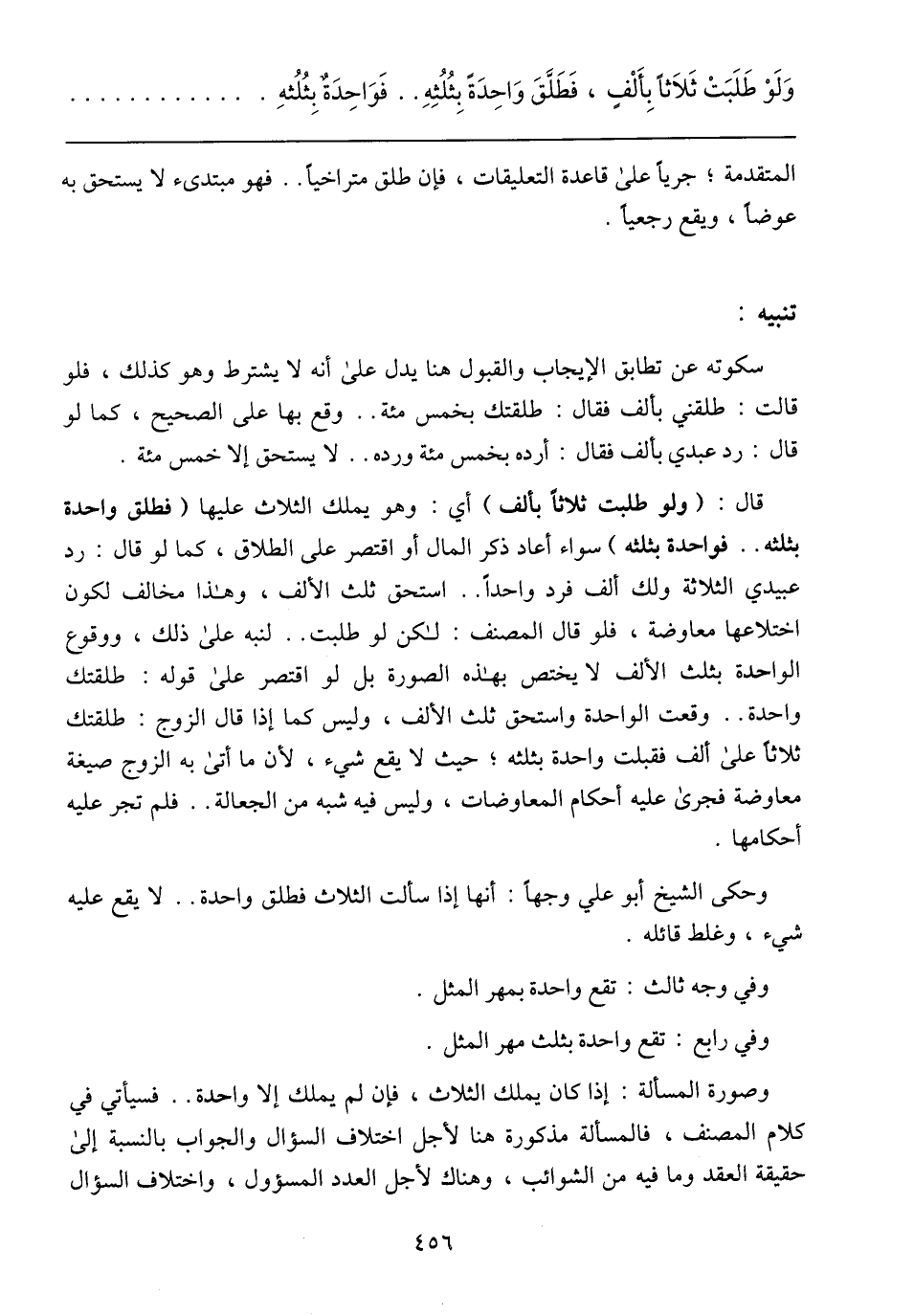 سكوته عن تطابق الإيجاب والقبول هنا يدل على أنه لا يشترط وهو كذلك، فلو قالت: طلقني بألف فقال: طلقتك بخمس مئة .. وقع بها على الصحيح، كما لو قال: رد عبدي بألف فقال: أرده بخمس مئة ورده .. لا يستحق إلا خمس مئة.