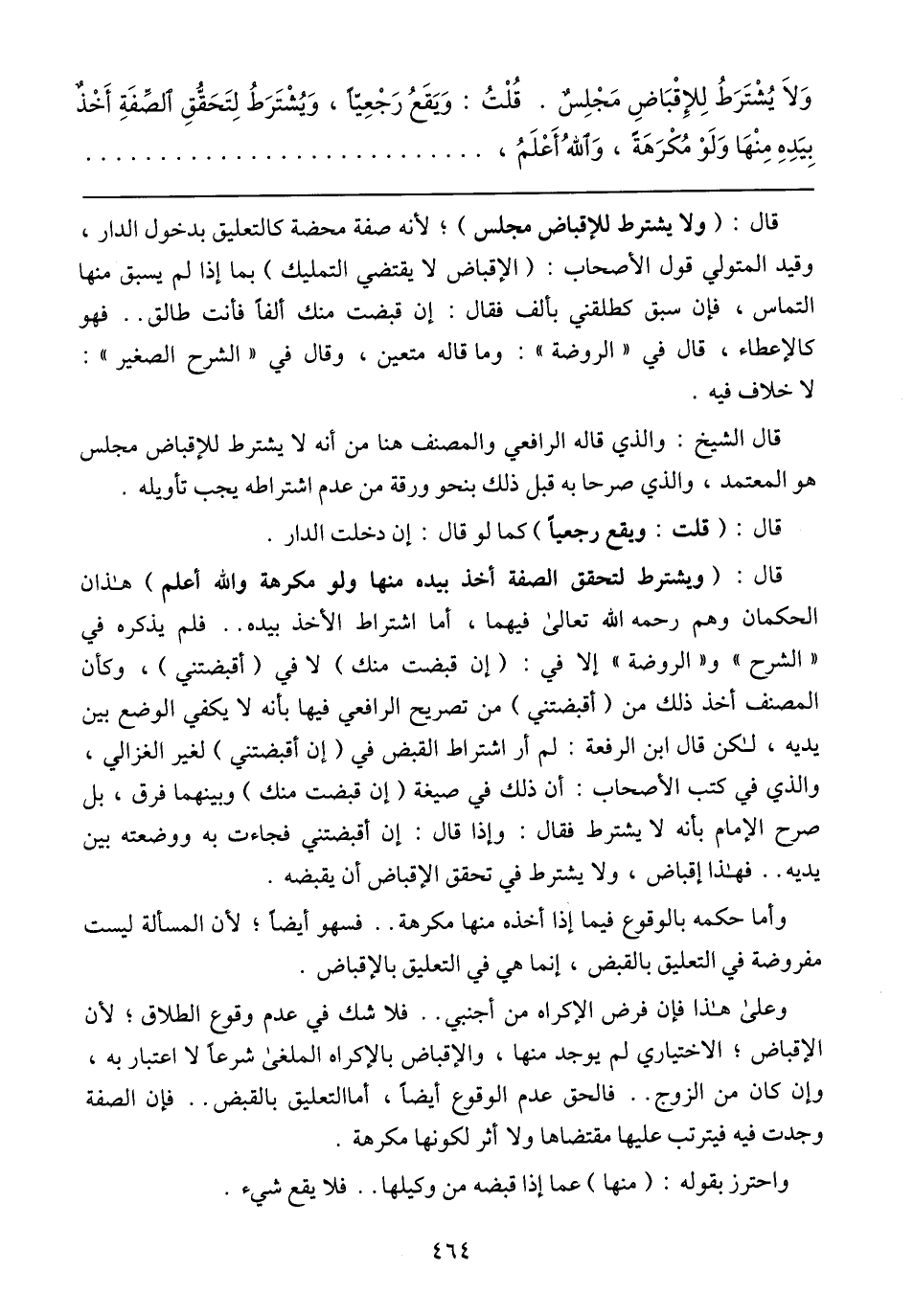 قال الشيخ: والذي قاله الرافعي والمصنف هنا من أنه لا يشترط للإقباض مجلس هو المعتمد، والذي صرحا به قبل ذلك بنحو ورقة من عدم اشتراطه يجب تأويله.
