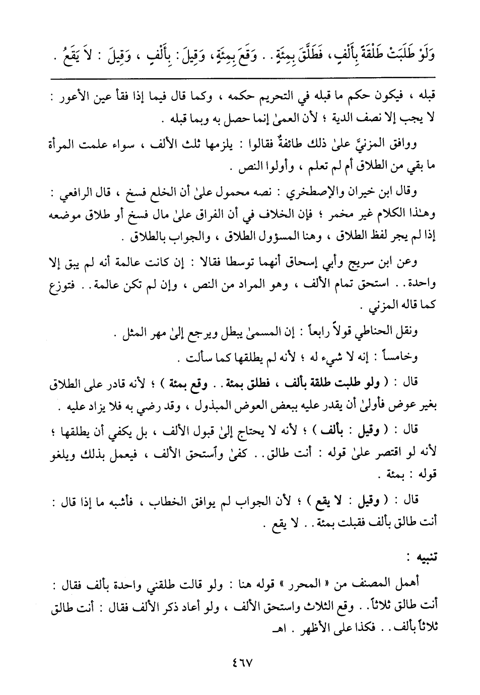 أهمل المصنف من (المحرر) قوله هنا: ولو قالت طلقني واحدة بألف فقال: أنت طالق ثلاثًا .. وقع الثلاث واستحق الألف، ولو أعاد ذكر الألف فقال: أنت طالق ثلاثًا بألف .. فكذا على الأظهر. اهـ