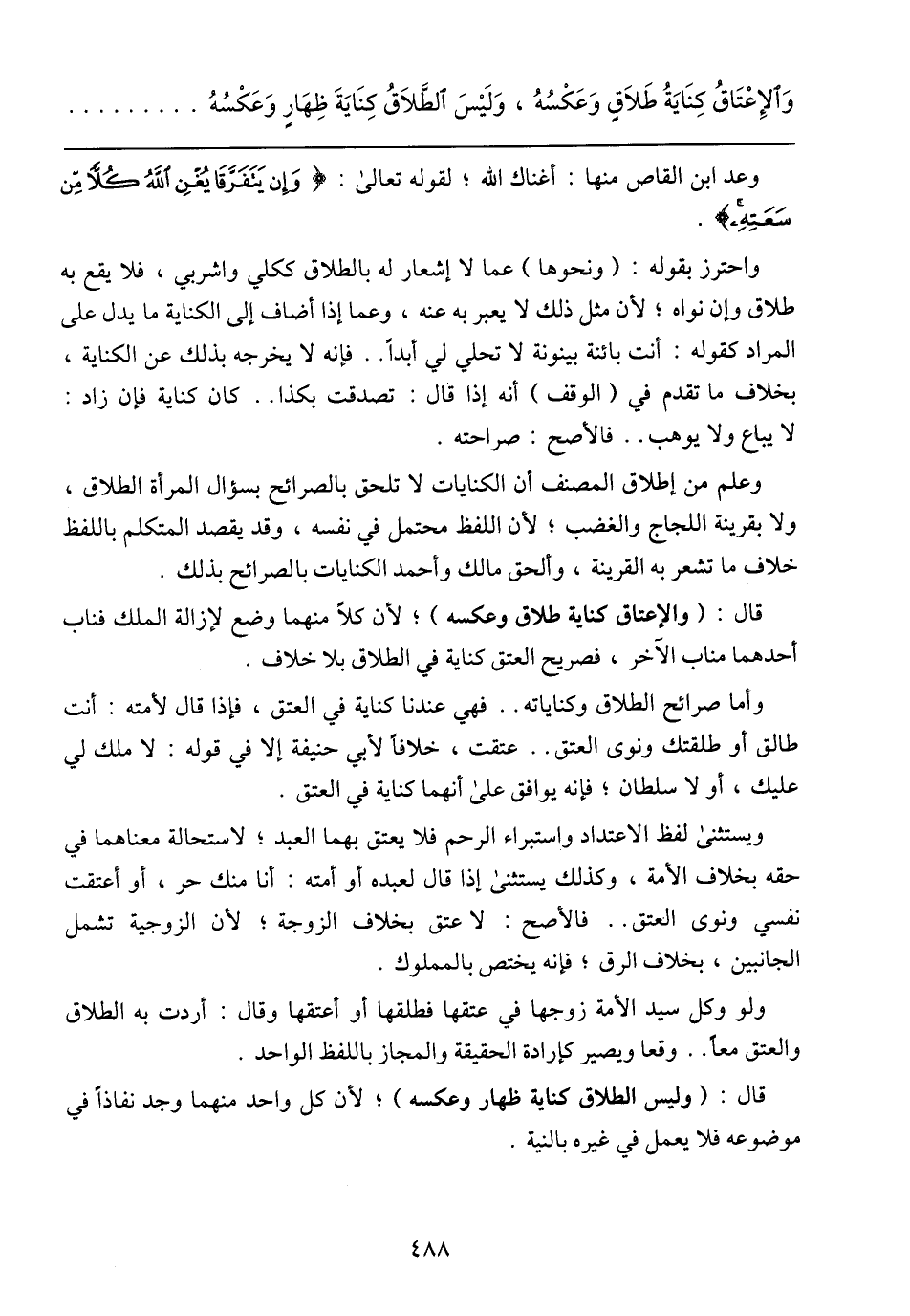 وَالإِعْتَاقُ كِنَايَةُ طَلاَقٍ وَعَكْسُهُ، وَلَيْسَ الطَّلاَقُ كِنَايَةَ ظِهَارٍ وَعَكْسُهُ