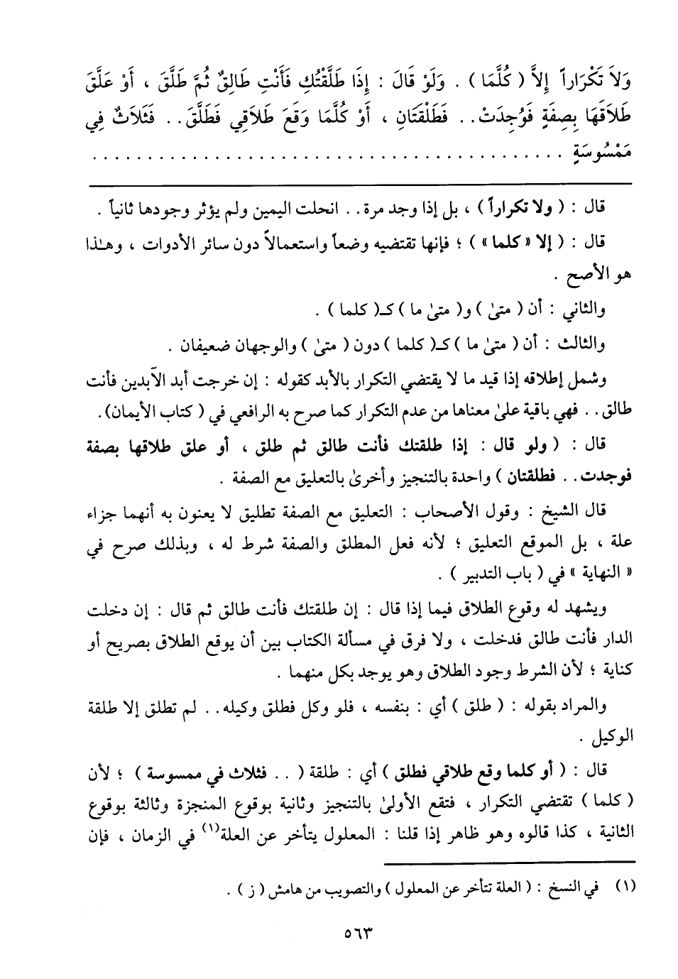 قال الشيخ: وقول الأصحاب: التعليق مع الصفة تطليق لا يعنون به أنهما جزاء علة، بل الموقع التعليق؛ لأنه فعل المطلق والصفة شرط له، وبذلك صرح في (النهاية) في (باب التدبير).