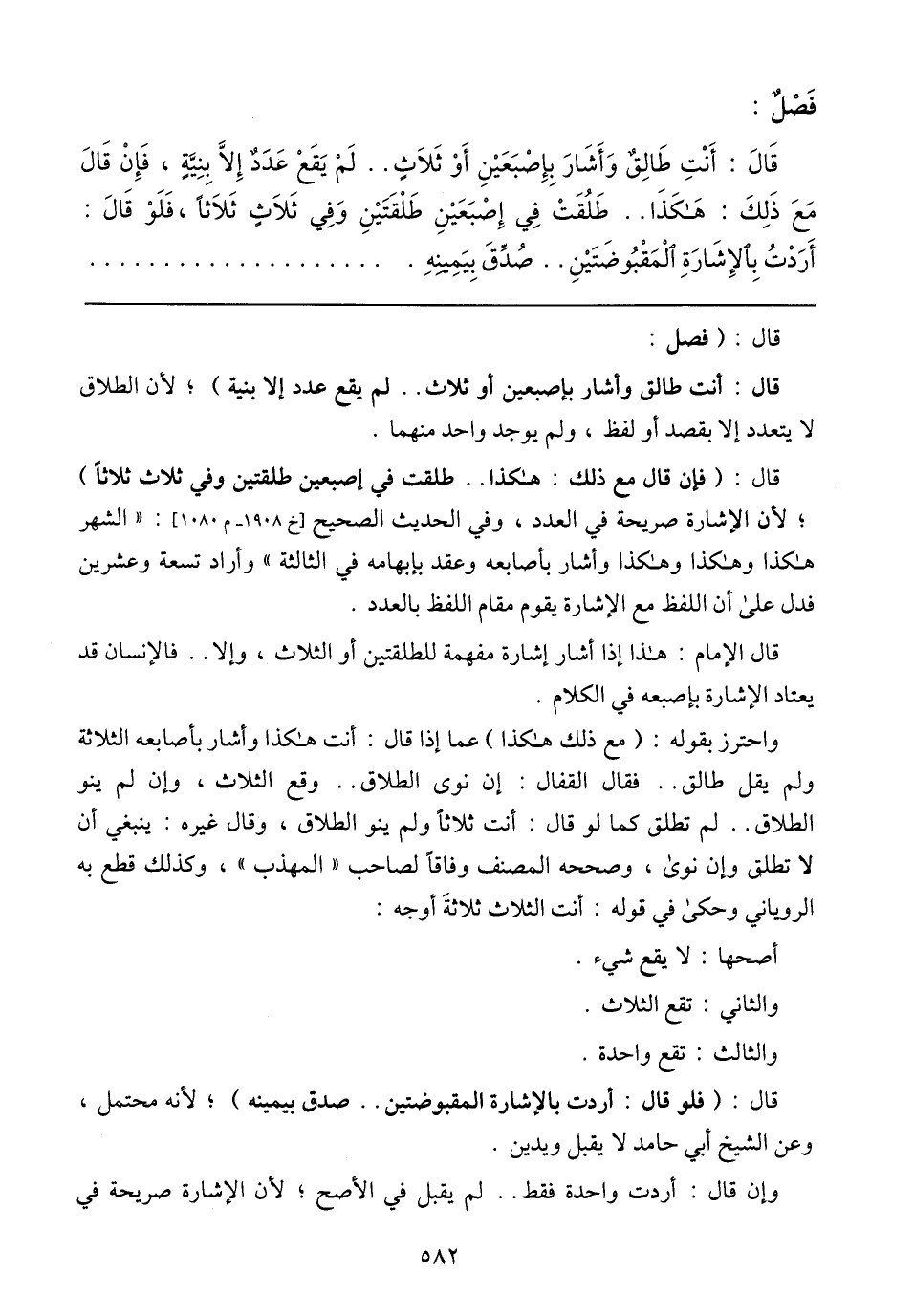 قال الإمام: هذا إذا أشار إشارة مفهمة للطلقتين أو الثلاث, وإلا ... فالإنسان قد يعتاد الإشارة بإصبعه في الكلام.