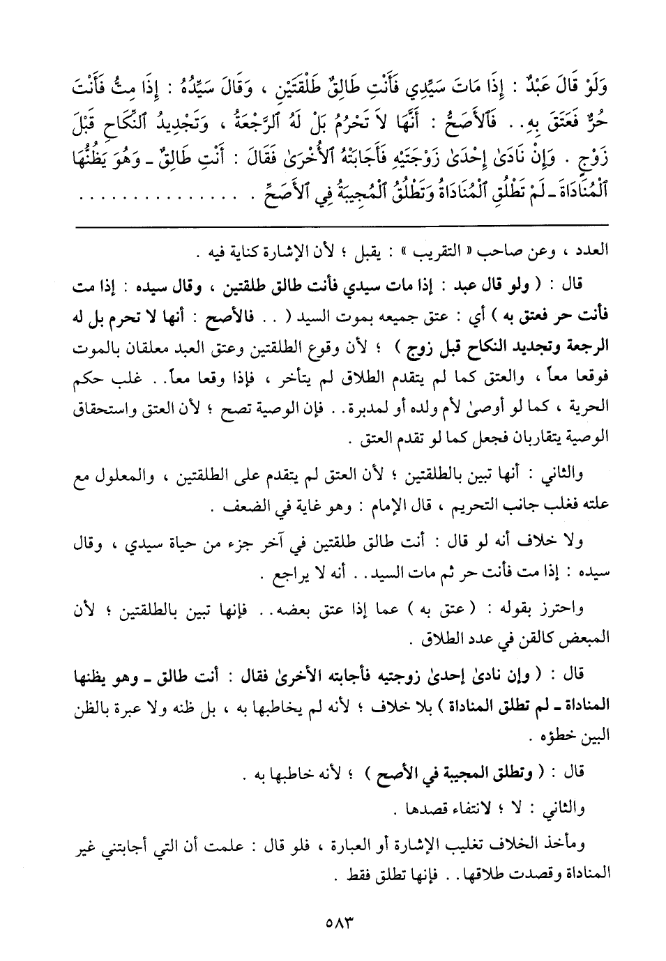 ومأخذ الخلاف تغليب الإشارة أو العبارة, فول قال: علمت أن التي أجابتني غير المناداة وقصدت طلاقها ... فإنها تطلق فقط.
