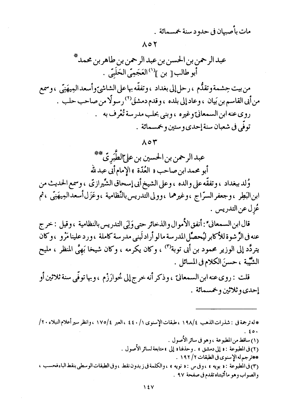 853 - عبد الرَّحْمَن بن الْحُسَيْن بن عَليّ الطَّبَرِيّ أَبُو مُحَمَّد ابْن صَاحب الْعدة الإِمَام أبي عبد الله