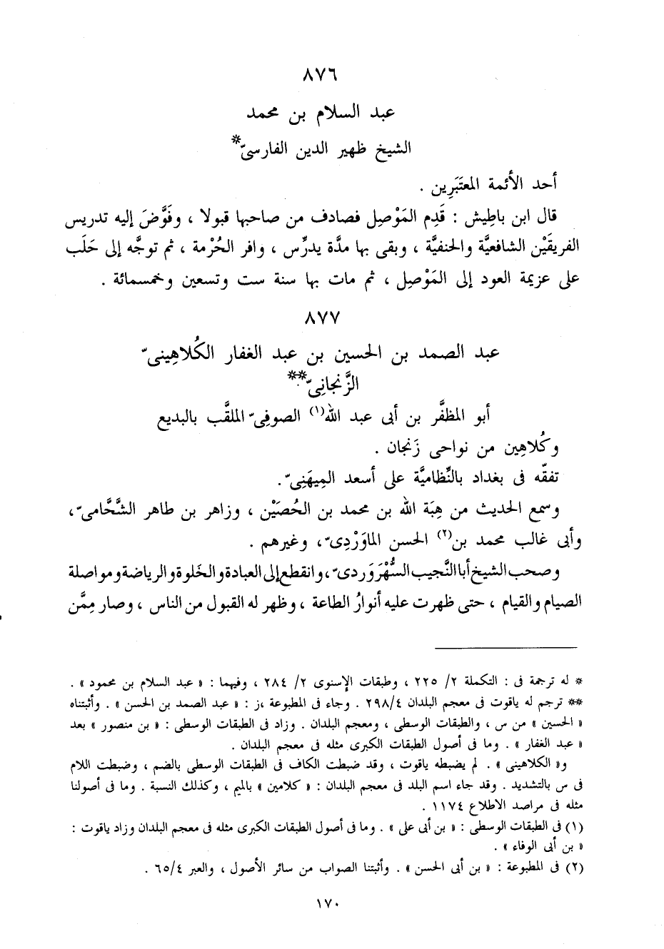 877 - عبد الصَّمد بن الْحُسَيْن بن عبد الْغفار الكلاهيني الزنجاني أَبُو المظفر بن أبي عبد الله الصُّوفِي الملقب بالبديع وكلاهين من نواحي زنجان