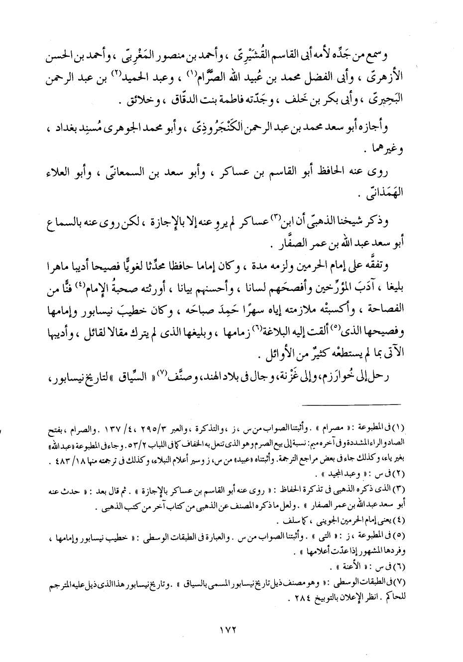 رَحل إِلَى خوارزم وَإِلَى غزنة وجال فِي بِلَاد الْهِنْد وصنف السِّيَاق لتاريخ نيسابور