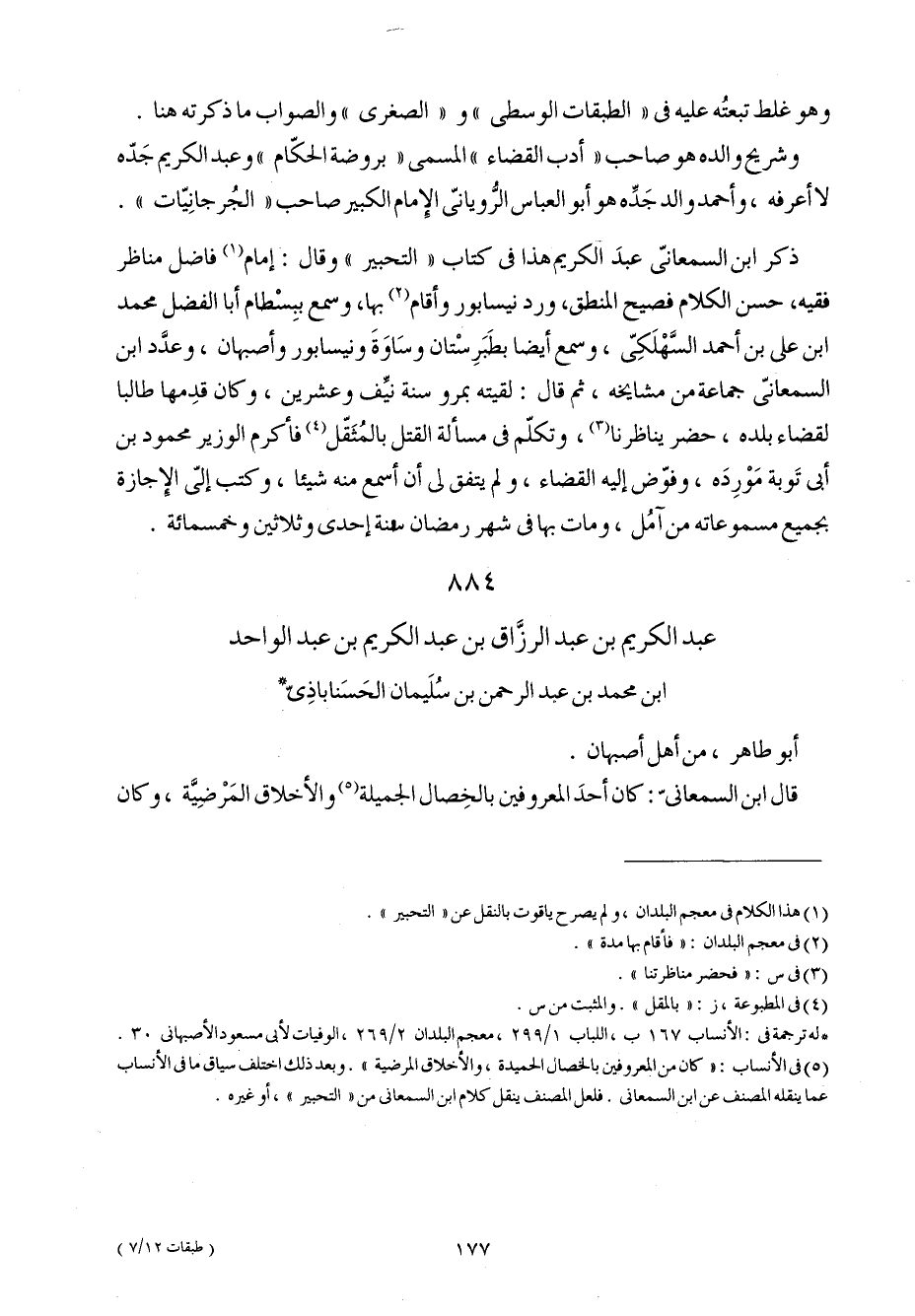 884 - عبد الْكَرِيم بن عبد الرَّزَّاق بن عبد الْكَرِيم بن عبد الْوَاحِد ابْن مُحَمَّد بن عبد الرَّحْمَن بن سُلَيْمَان الحسناباذي
