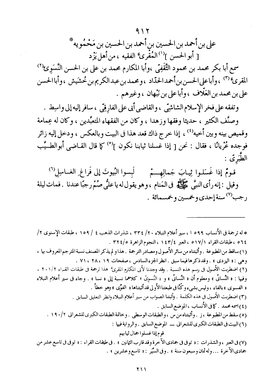 912 - عَليّ بن أَحْمد بن الْحُسَيْن بن أَحْمد بن الْحُسَيْن بن محمويه أَبُو الْحسن المقرىء الْفَقِيه من أهل يزدْ