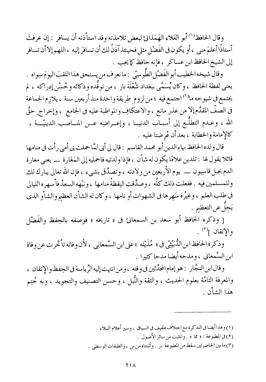 وَذكره الْحَافِظ أَبُو سعد بن السَّمْعَانِيّ فِي تَارِيخه فوصفه بِالْحِفْظِ وَالْفضل والإتقان