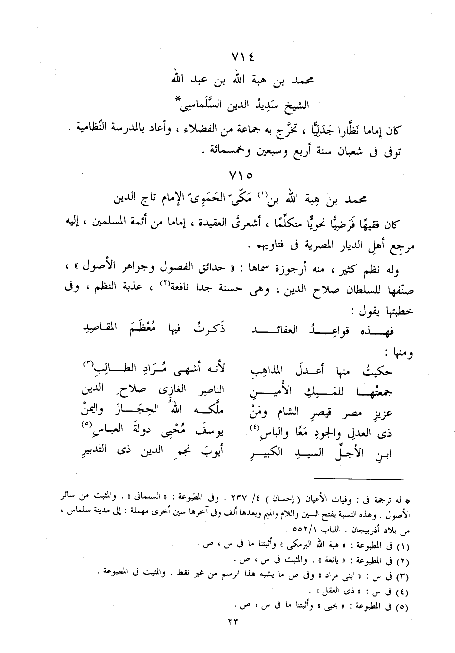 714 - مُحَمَّد بن هبة الله بن عبد الله الشَّيْخ سديد الدّين السلماسي