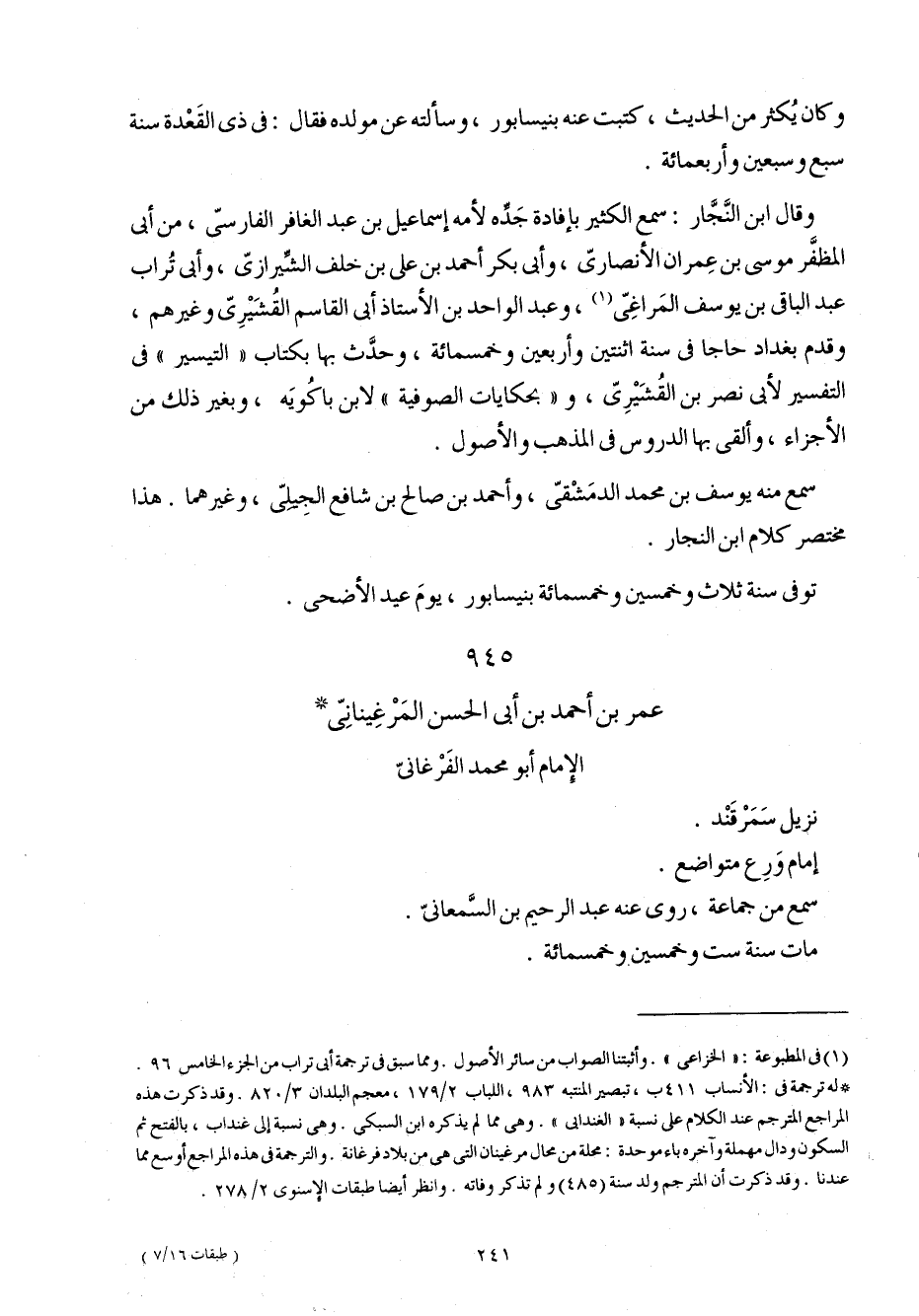 945 - عمر بن أَحْمد بن أبي الْحسن المرغيناني الإِمَام أَبُو مُحَمَّد الفرغاني