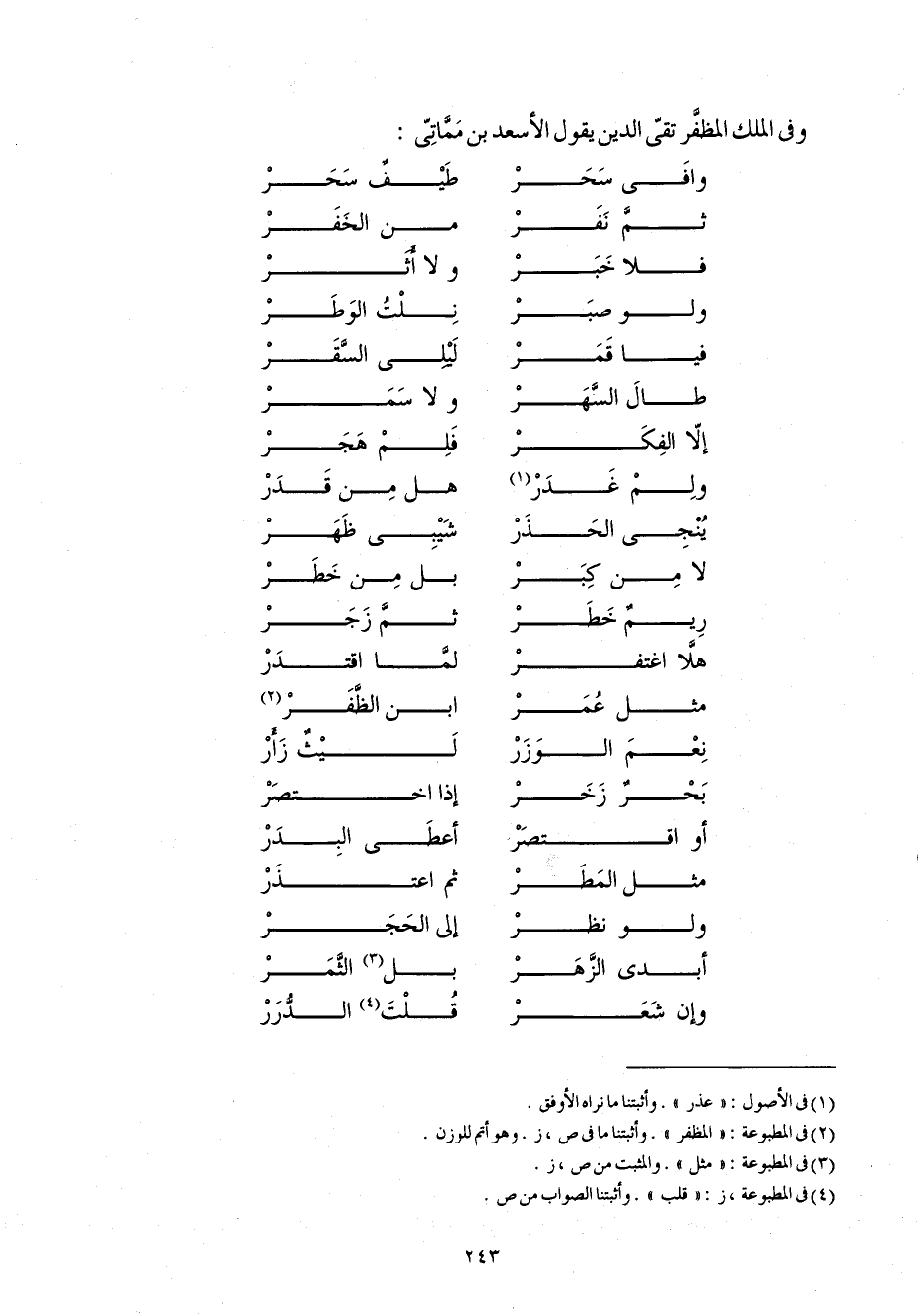 وَفِي الْملك المظفر تَقِيّ الدّين يَقُول الأسعد بن مماتي
