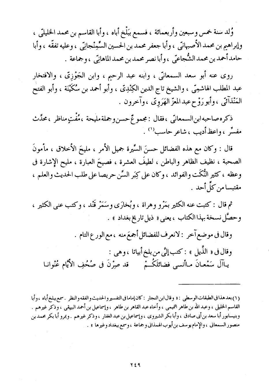 ثمَّ قَالَ كتبت عَنهُ الْكثير بمرو وهراة وبخارى وسمرقند وَكتب عني الْكثير وَحصل نُسْخَة بِهَذَا الْكتاب يَعْنِي ذيل تَارِيخ بَغْدَاد