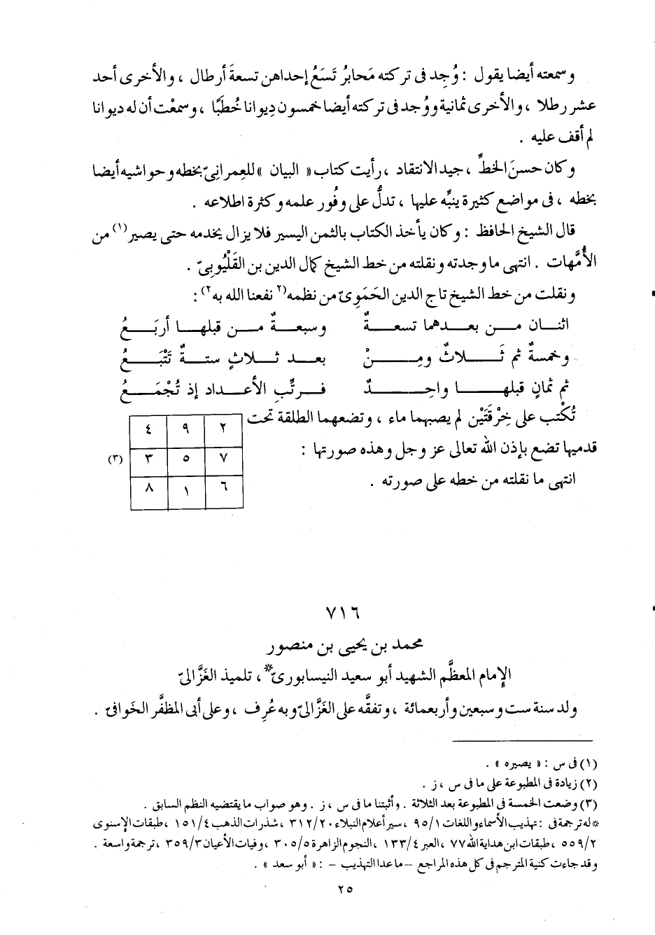 716 - مُحَمَّد بن يحيى بن مَنْصُور الإِمَام الْمُعظم الشَّهِيد أَبُو سعيد النَّيْسَابُورِي تلميذ الْغَزالِيّ