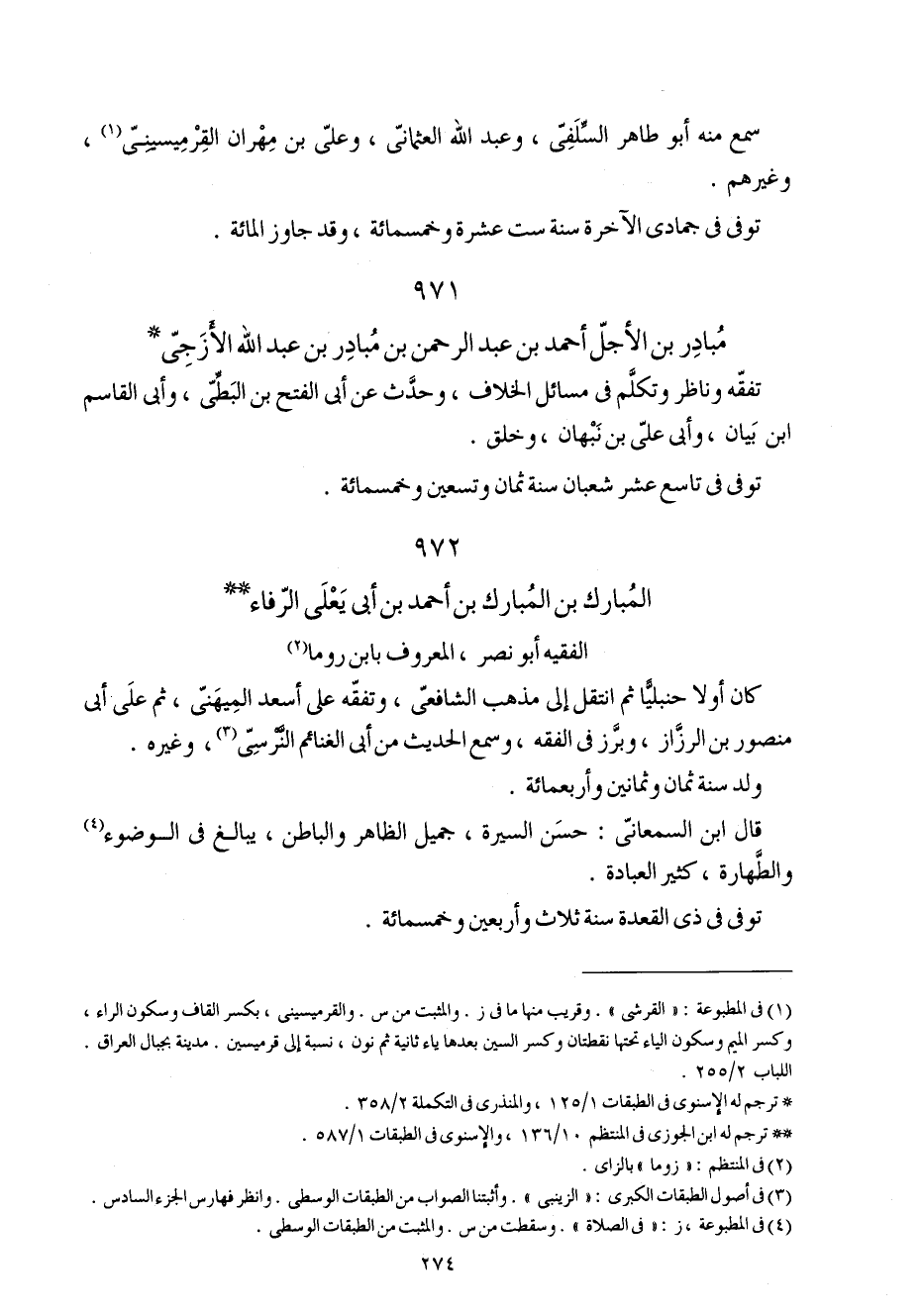 972 - الْمُبَارك بن الْمُبَارك بن أَحْمد بن أبي يعلي الرفاء الْفَقِيه أَبُو نصر الْمَعْرُوف بِابْن روما