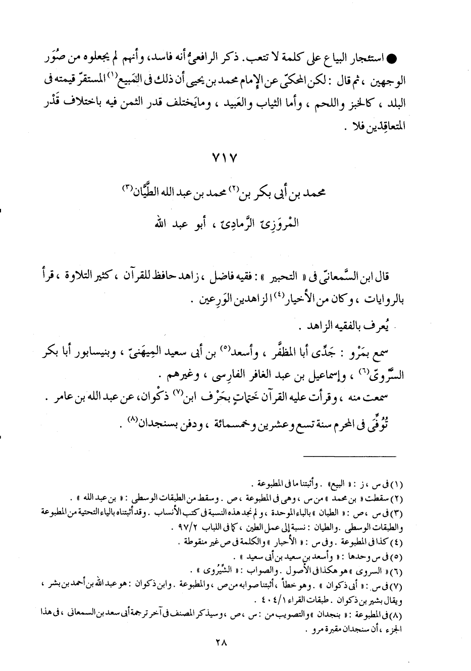 717 - مُحَمَّد بن أبي بكر بن مُحَمَّد بن عبد الله الطيان الْمروزِي الرَّمَادِي أَبُو عبد الله