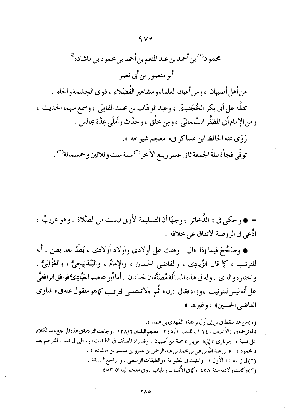 979 - مَحْمُود بن أَحْمد بن عبد الْمُنعم بن أَحْمد بن مَحْمُود بن ماشاده أَبُو مَنْصُور بن أبي نصر
