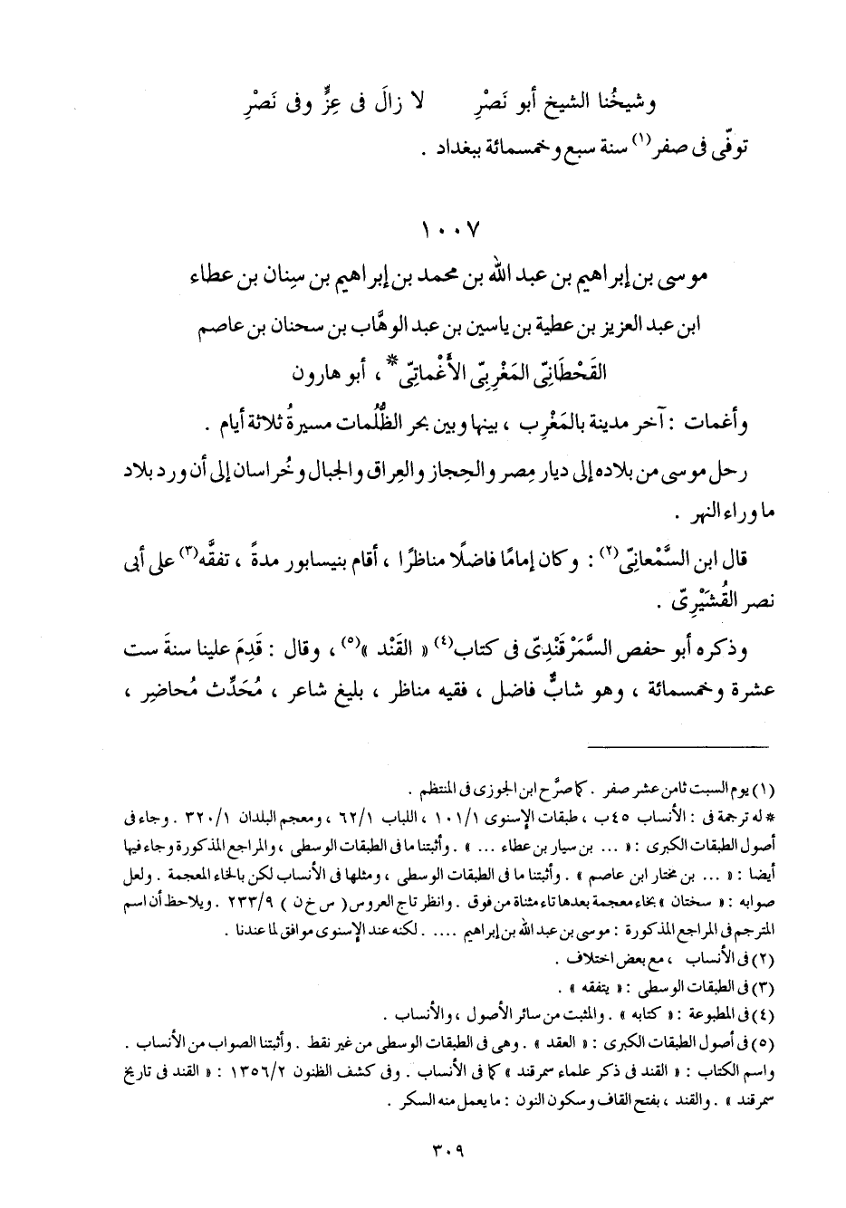 1007 - مُوسَى بن إِبْرَاهِيم بن عبد الله بن مُحَمَّد بن إِبْرَاهِيم بن سِنَان بن عَطاء ابْن عبد الْعَزِيز بن عَطِيَّة بن ياسين بن عبد الْوَهَّاب بن سحنان بن عَاصِم القحطاني المغربي الأغماتي أَبُو هَارُون