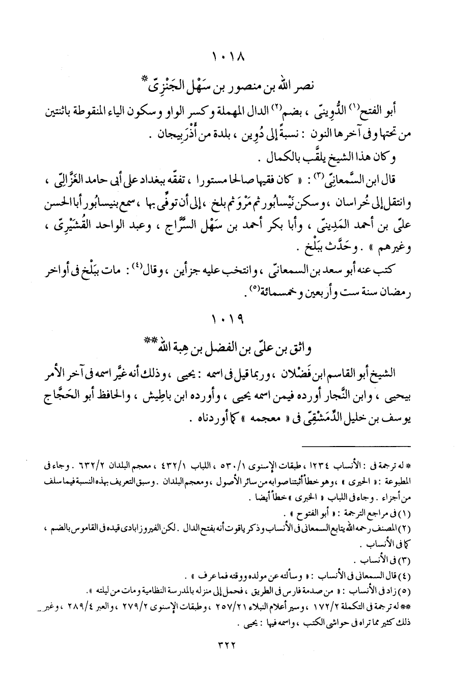 1018 - نصر الله بن مَنْصُور بن سهل الجنزي أَبُو الْفَتْح الدويني بِضَم الدَّال الْمُهْملَة وَكسر الْوَاو وَسُكُون الْيَاء المنقوطة بِاثْنَتَيْنِ من تحتهَا وَفِي أَخّرهَا النُّون نِسْبَة إِلَى دوين بَلْدَة من أذربيجان