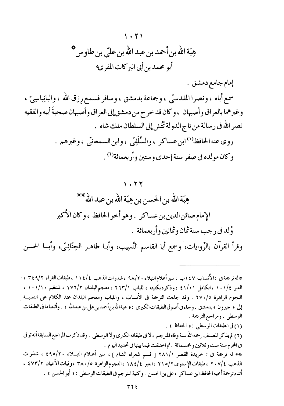 1022 - هبة الله بن الْحسن بن هبة الله بن عبد الله الإِمَام صائن الدّين بن عَسَاكِر وَهُوَ أَخُو الْحَافِظ وَكَانَ الْأَكْبَر ولد فِي رَجَب سنة ثَمَان وَثَمَانِينَ وَأَرْبَعمِائَة