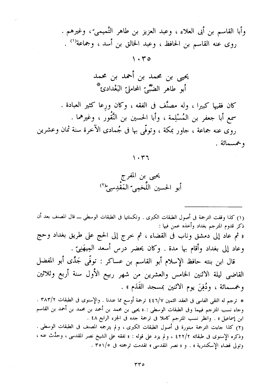 1035 - يحيى بن مُحَمَّد بن أَحْمد بن مُحَمَّد أَبُو طَاهِر الضَّبِّيّ الْمحَامِلِي الْبَغْدَادِيّ