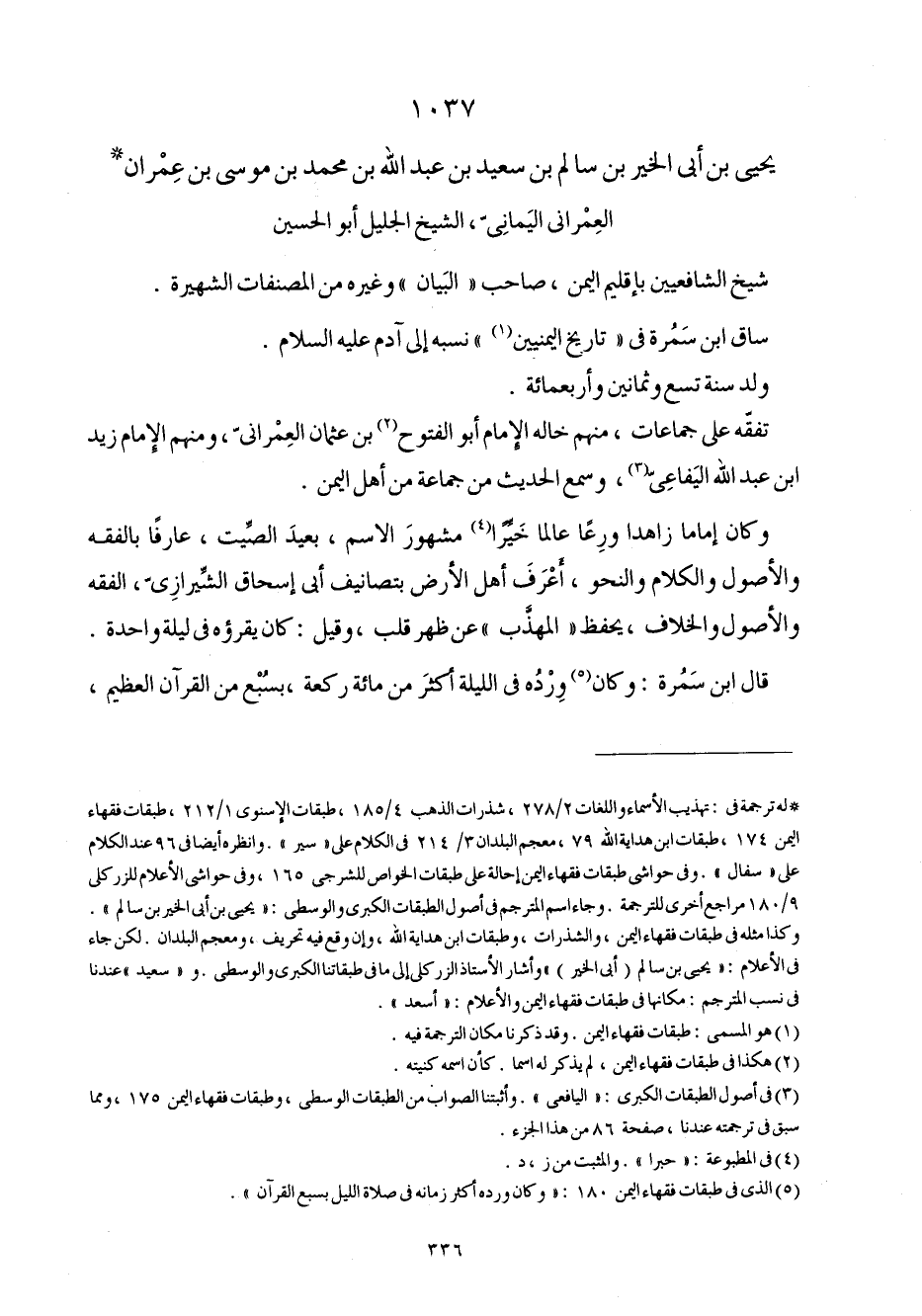 1037 - يحيى بن أبي الْخَيْر بن سَالم بن سعيد بن عبد الله بن مُحَمَّد بن مُوسَى بن عمرَان العمراني الْيَمَانِيّ الشَّيْخ الْجَلِيل أَبُو الْحُسَيْن