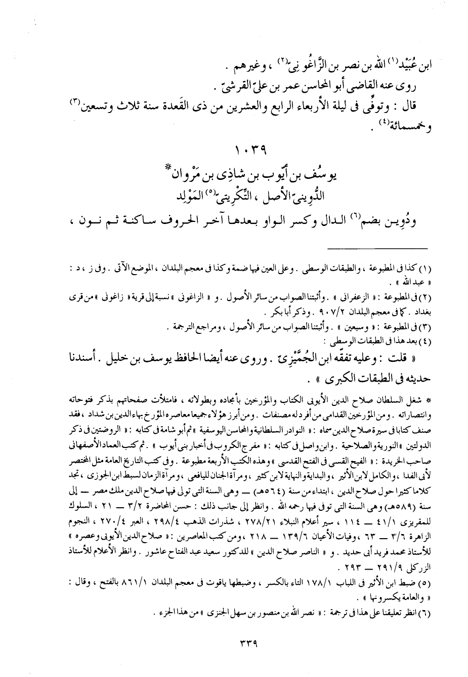 1039 - يُوسُف بن أَيُّوب بن شاذي بن مَرْوَان الدويني الأَصْل التكريتي المولد