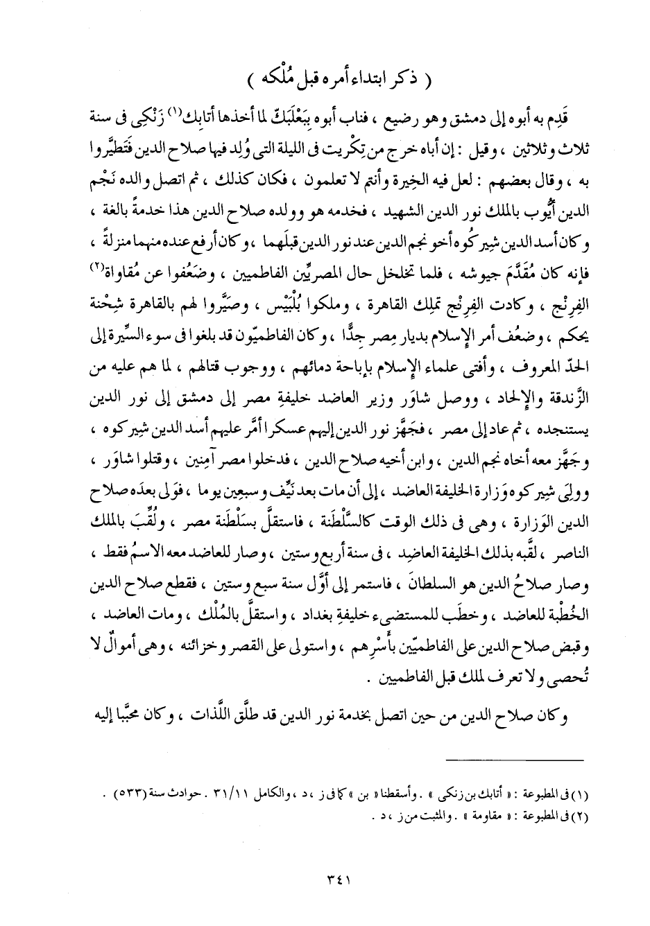 وَكَانَ صَلَاح الدّين من حِين اتَّصل بِخِدْمَة نور الدّين قد طلق اللَّذَّات وَكَانَ محببا إِلَيْهِ