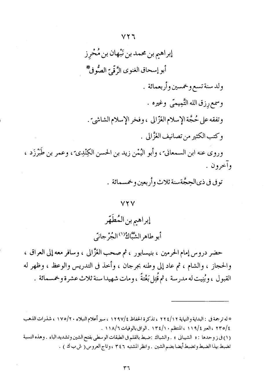 727 - إيراهيم بن المطهر أَبُو طَاهِر الشباك الْجِرْجَانِيّ