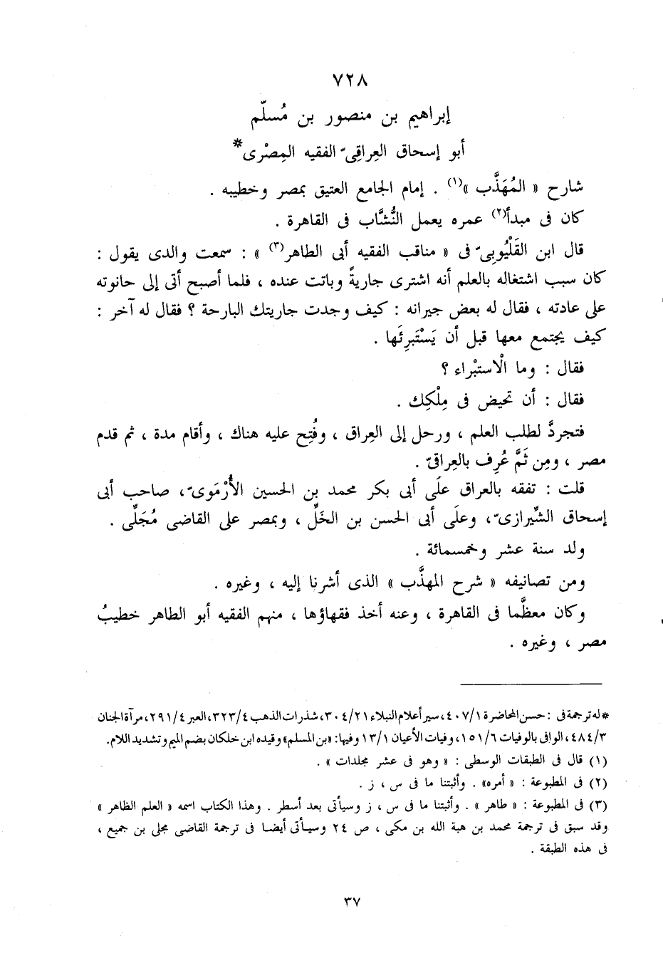 728 - إِبْرَاهِيم بن مَنْصُور بن مُسلم أَبُو إِسْحَاق الْعِرَاقِيّ الْفَقِيه الْمصْرِيّ