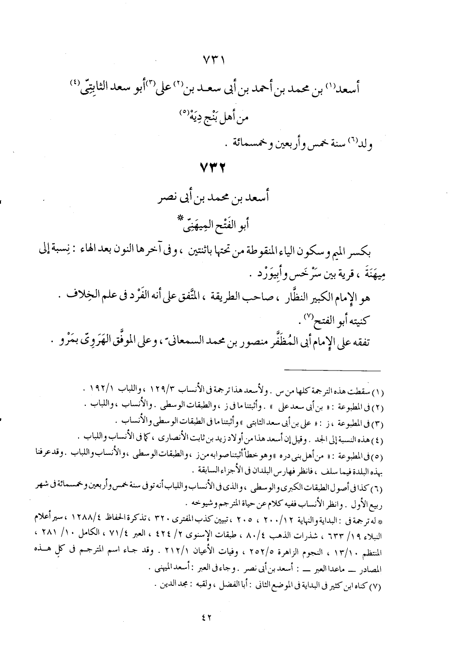 731 - أسعد بن مُحَمَّد بن أَحْمد بن أبي سعد بن عَليّ أَبُو سعد الثابتي