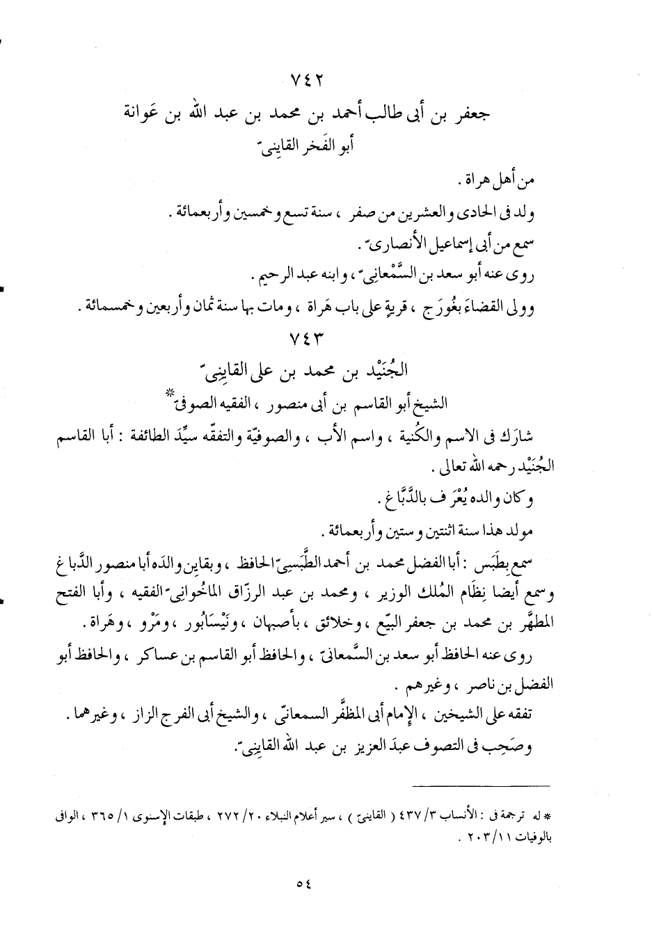 743 - الْجُنَيْد بن مُحَمَّد بن عَليّ القايني الشَّيْخ أَبُو الْقَاسِم بن أبي مَنْصُور الْفَقِيه الصُّوفِي