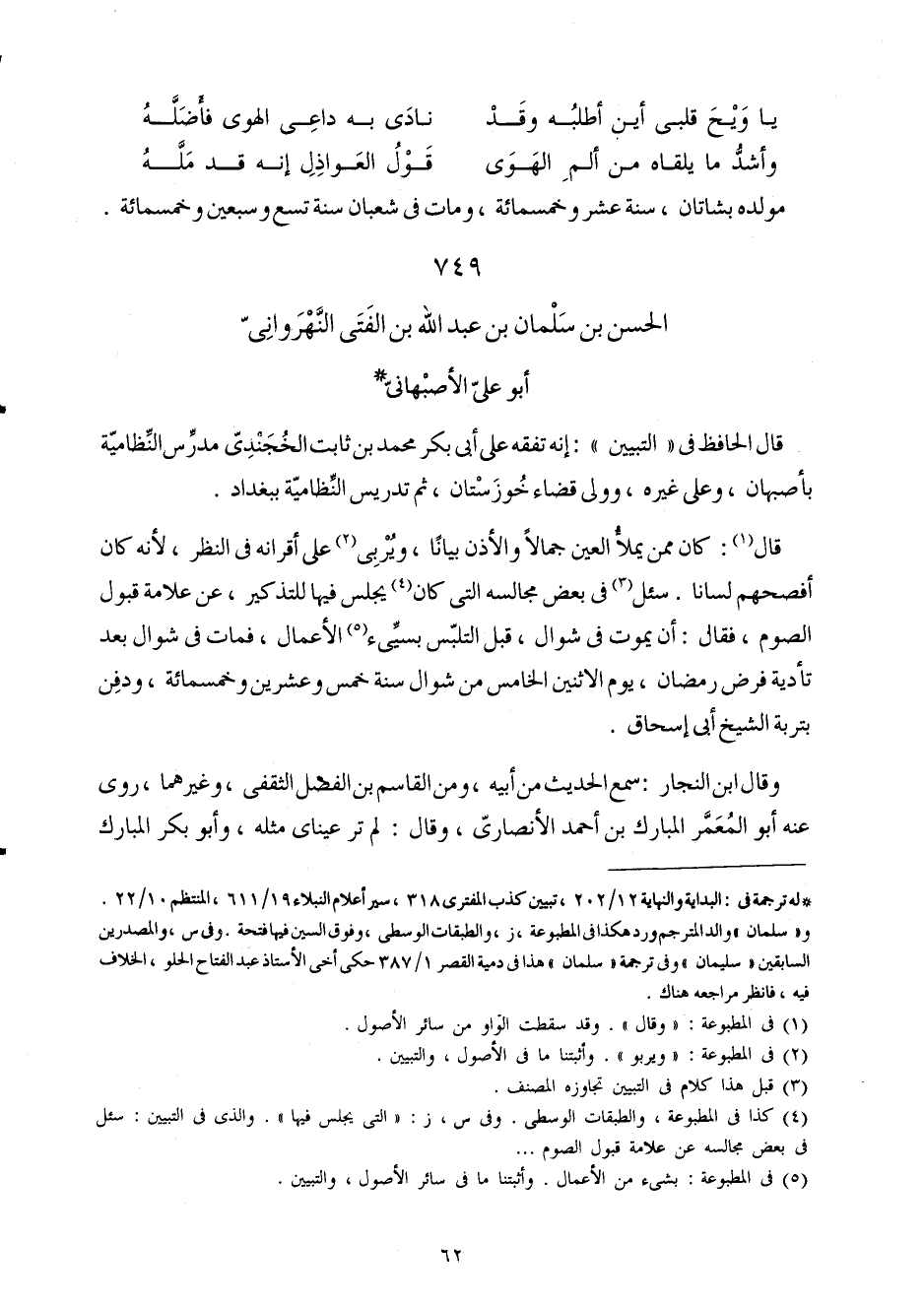 749 - الْحسن بن سلمَان بن عبد الله بن الْفَتى النهرواني أَبُو عَليّ الْأَصْبَهَانِيّ