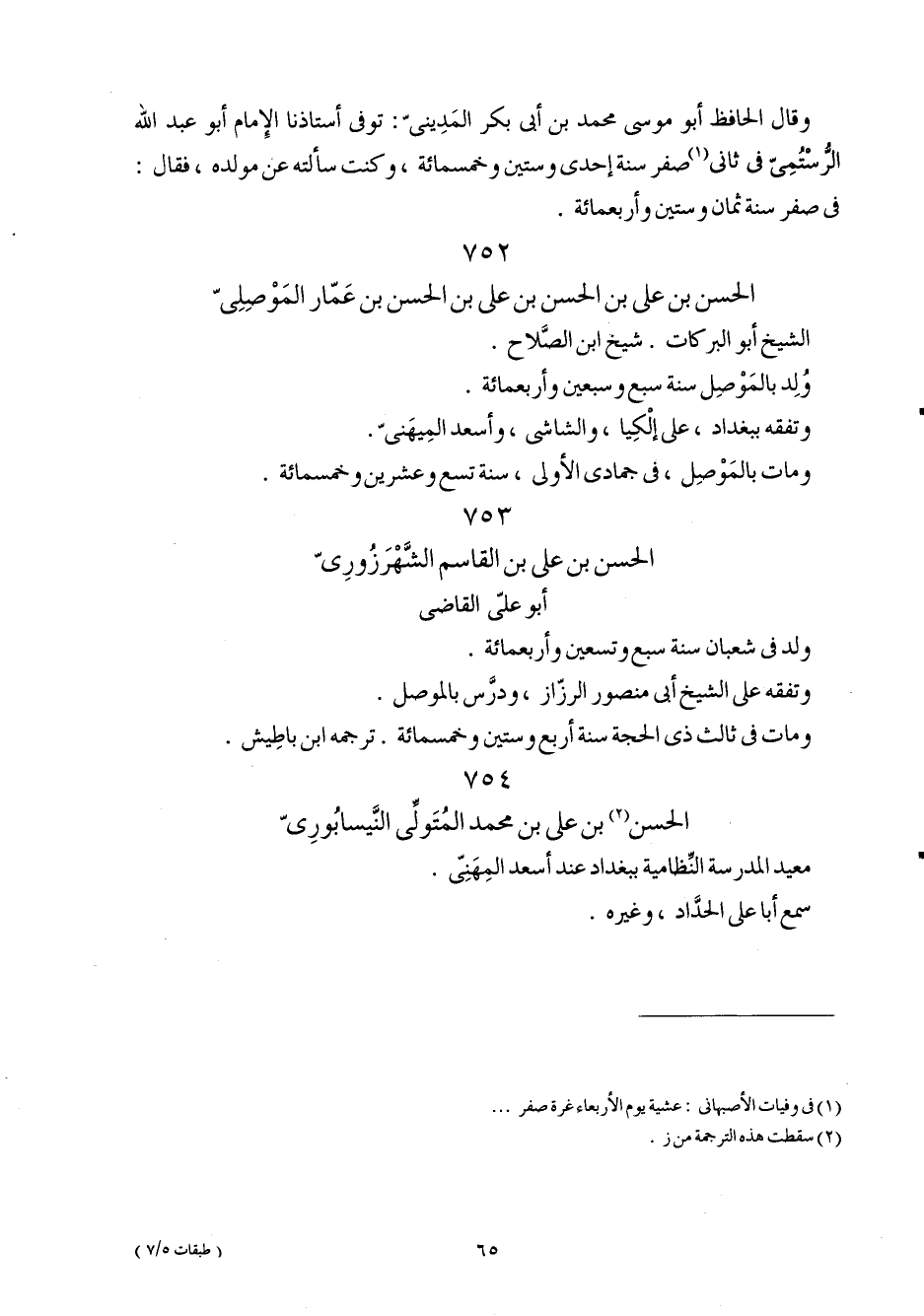 752 - الْحسن بن عَليّ بن الْحسن بن عَليّ بن الْحسن بن عمار الْموصِلِي الشَّيْخ أَبُو البركات شيخ ابْن صَلَاح