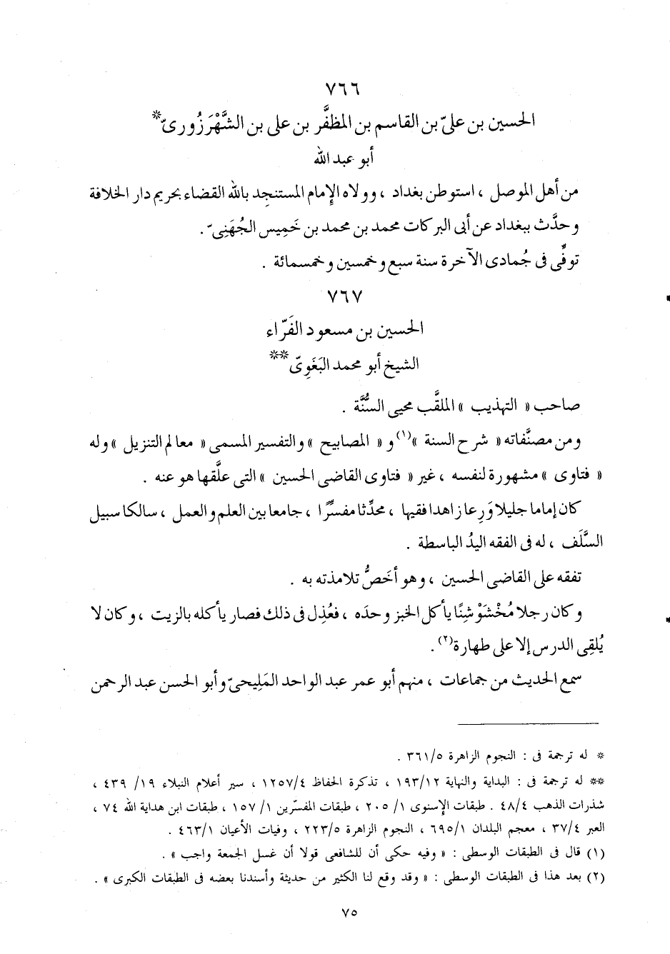 767 - الْحُسَيْن بن مَسْعُود الْفراء الشَّيْخ أَبُو مُحَمَّد الْبَغَوِيّ