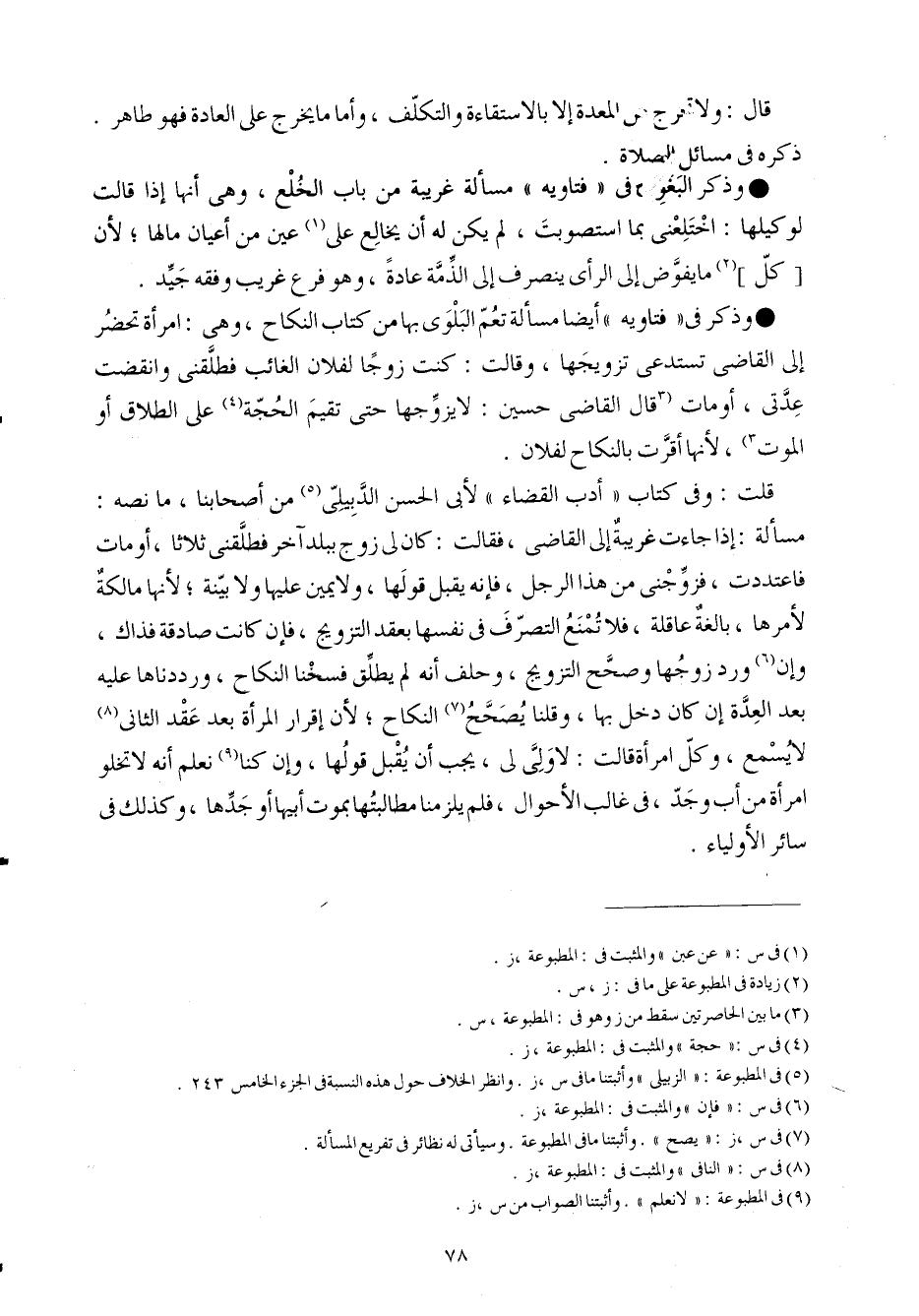 وَذكر فِي فَتَاوِيهِ أَيْضا مَسْأَلَة تعم البلوي بهَا من كتاب النِّكَاح وَهِي امْرَأَة تحضر إِلَى القَاضِي تستدعي تَزْوِيجهَا وَقَالَت كنت زوجا لفُلَان الْغَائِب فطلقني وَانْقَضَت عدتي أَو مَاتَ قَالَ القَاضِي حُسَيْن لَا يُزَوّجهَا حَتَّى تقيم الْحجَّة على الطَّلَاق أَو الْمَوْت لِأَنَّهَا أقرب بِالنِّكَاحِ لفُلَان