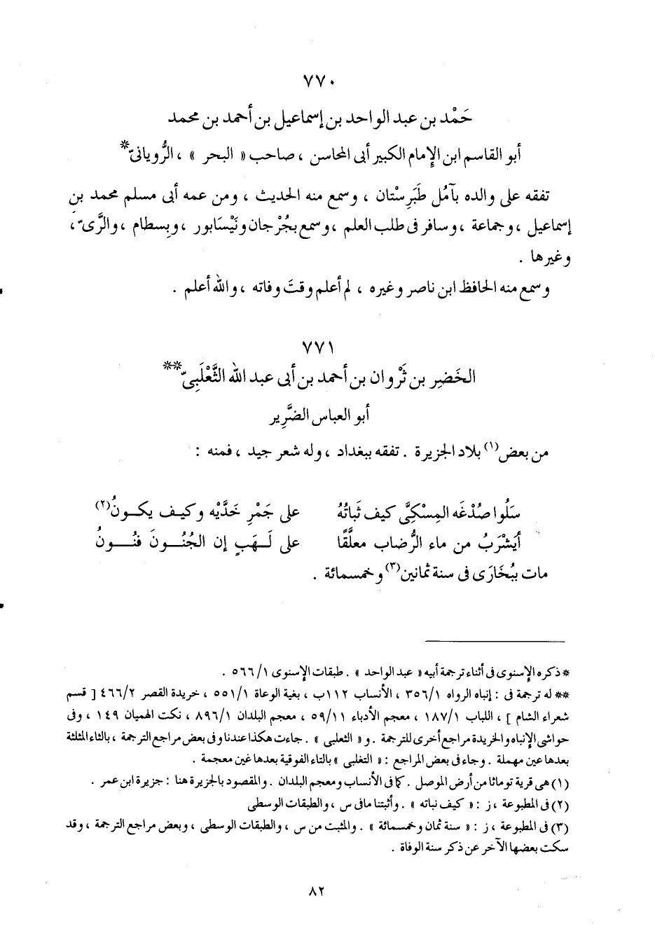 770 - حمد بن عبد الْوَاحِد بن إِسْمَاعِيل بن أَحْمد بن مُحَمَّد أَبُو الْقَاسِم ابْن الإِمَام الْكَبِير أبي المحاسن صَاحب الْبَحْر الرَّوْيَانِيّ