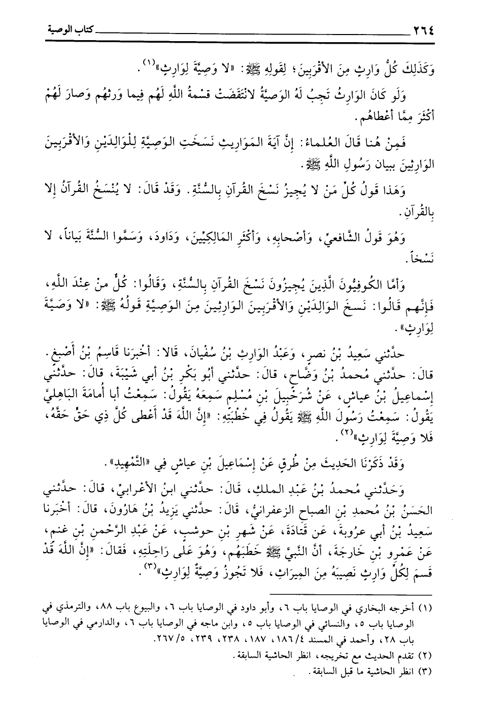 حَدَّثَنِي سَعِيدُ بْنُ نَصْرٍ وَعَبْدُ الْوَارِثِ بْنُ سُفْيَانَ قَالَا أَخْبَرَنَا قَاسِمُ بْنُ أَصْبَغَ قَالَ حَدَّثَنِي مُحَمَّدُ بْنُ وَضَّاحٍ قَالَ حَدَّثَنِي أَبُو بَكْرِ بْنُ أَبِي شَيْبَةَ قَالَ حَدَّثَنِي إِسْمَاعِيلُ بْنُ عَيَّاشٍ عَنْ شُرَحْبِيلَ بْنِ مُسْلِمٍ سَمِعَهُ يَقُولُ سَمِعْتُ أَبَا أُمَامَةَ الْبَاهِلِيَّ يَقُولُ سَمِعْتُ رَسُولَ اللَّهِ صَلَّى اللَّهُ عَلَيْهِ وَسَلَّمَ يَقُولُ فِي خُطْبَتِهِ (إِنَّ اللَّهَ قَدْ أَعْطَى كُلَّ ذِي حَقٍّ حَقَّهُ فَلَا وَصِيَّةَ لِوَارِثٍ)