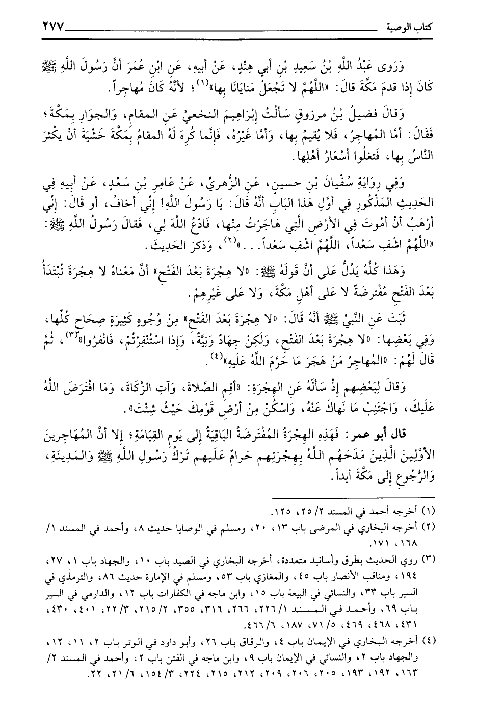 ثَبَتَ عَنِ النَّبِيِّ صَلَّى اللَّهُ عَلَيْهِ وَسَلَّمَ أَنَّهُ قَالَ (لَا هِجْرَةَ بَعْدَ الْفَتْحِ) مِنْ وُجُوهٍ كَثِيرَةٍ صِحَاحٍ كُلِّهَا وَفِي بَعْضِهَا (لَا هِجْرَةَ بَعْدَ الْفَتْحِ وَلَكِنْ جِهَادٌ وَنِيَّةٌ وَإِذَا اسْتُنْفِرْتُمْ فَانْفِرُوا) ثُمَّ قَالَ لَهُمْ (الْمُهَاجِرُ مَنْ هَجَرَ مَا حَرَّمَ اللَّهُ عَلَيْهِ)