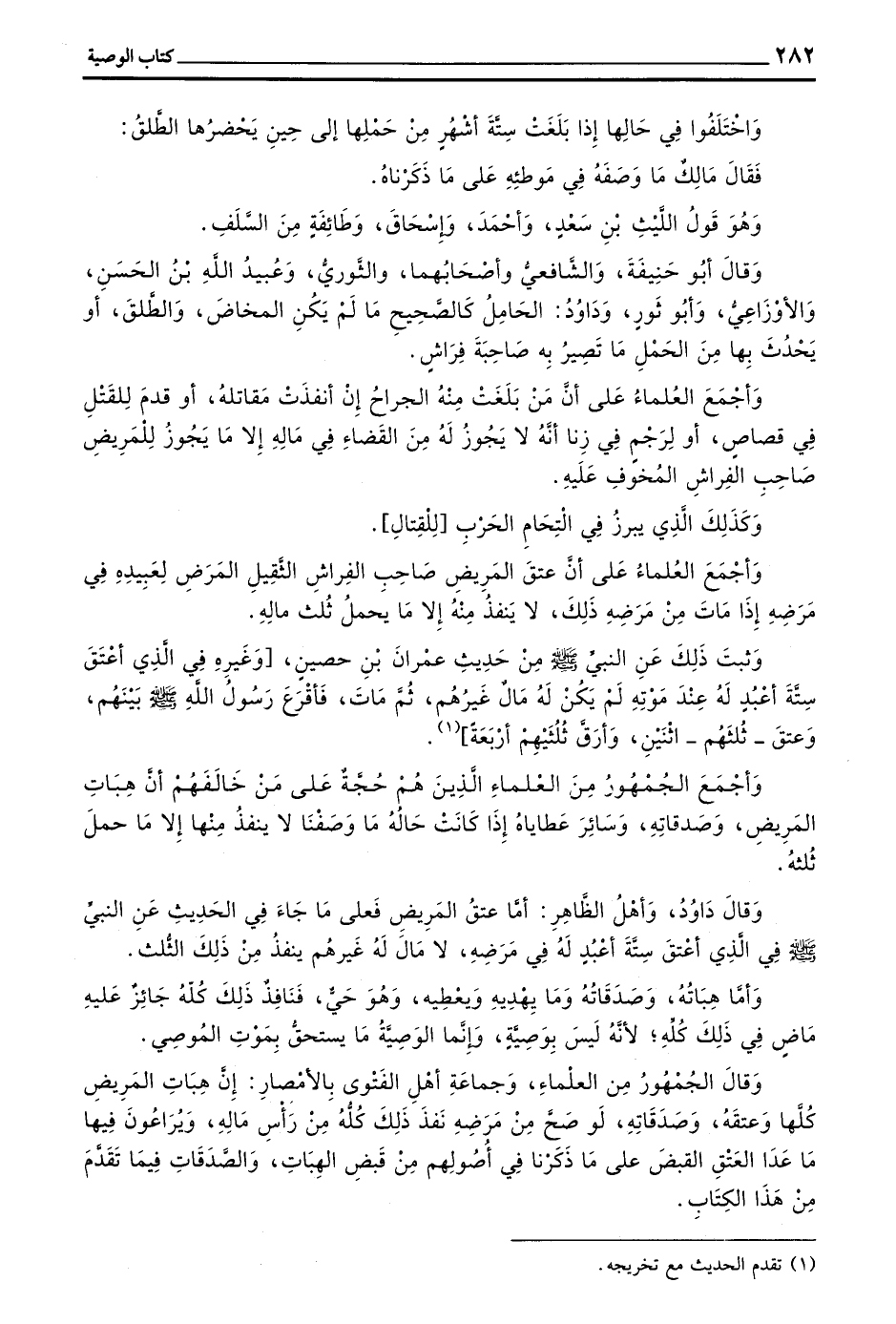 وَأَجْمَعَ الْجُمْهُورُ مِنَ الْعُلَمَاءِ الَّذِينَ هُمْ حُجَّةٌ عَلَى مَنْ خَالَفَهُمْ أَنَّ هِبَاتِ الْمَرِيضِ وَصَدَقَاتِهِ وَسَائِرَ عَطَايَاهُ إِذَا كَانَتْ حَالُهُ مَا وَصَفْنَا لَا يَنْفُذُ مِنْهَا إِلَّا مَا حَمَلَ ثُلُثُهُ