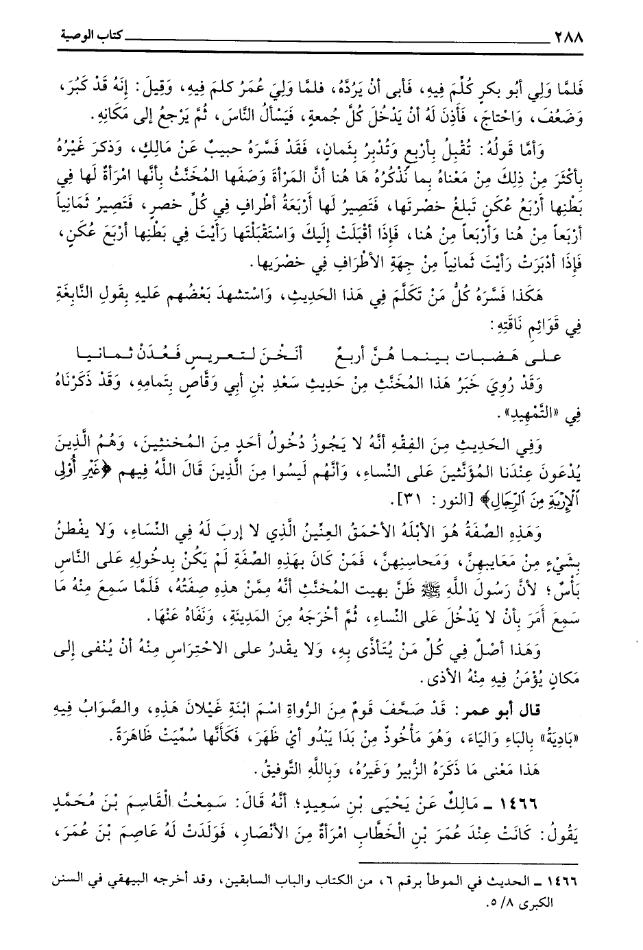 1466 - مَالِكٌ عَنْ يَحْيَى بْنِ سَعِيدٍ أَنَّهُ قَالَ سَمِعْتُ الْقَاسِمَ بْنَ مُحَمَّدٍ يَقُولُ كَانَتْ عِنْدَ عُمَرَ بْنِ الْخَطَّابِ امْرَأَةٌ مِنَ الْأَنْصَارِ فَوَلَدَتْ لَهُ عَاصِمَ بْنَ عمر