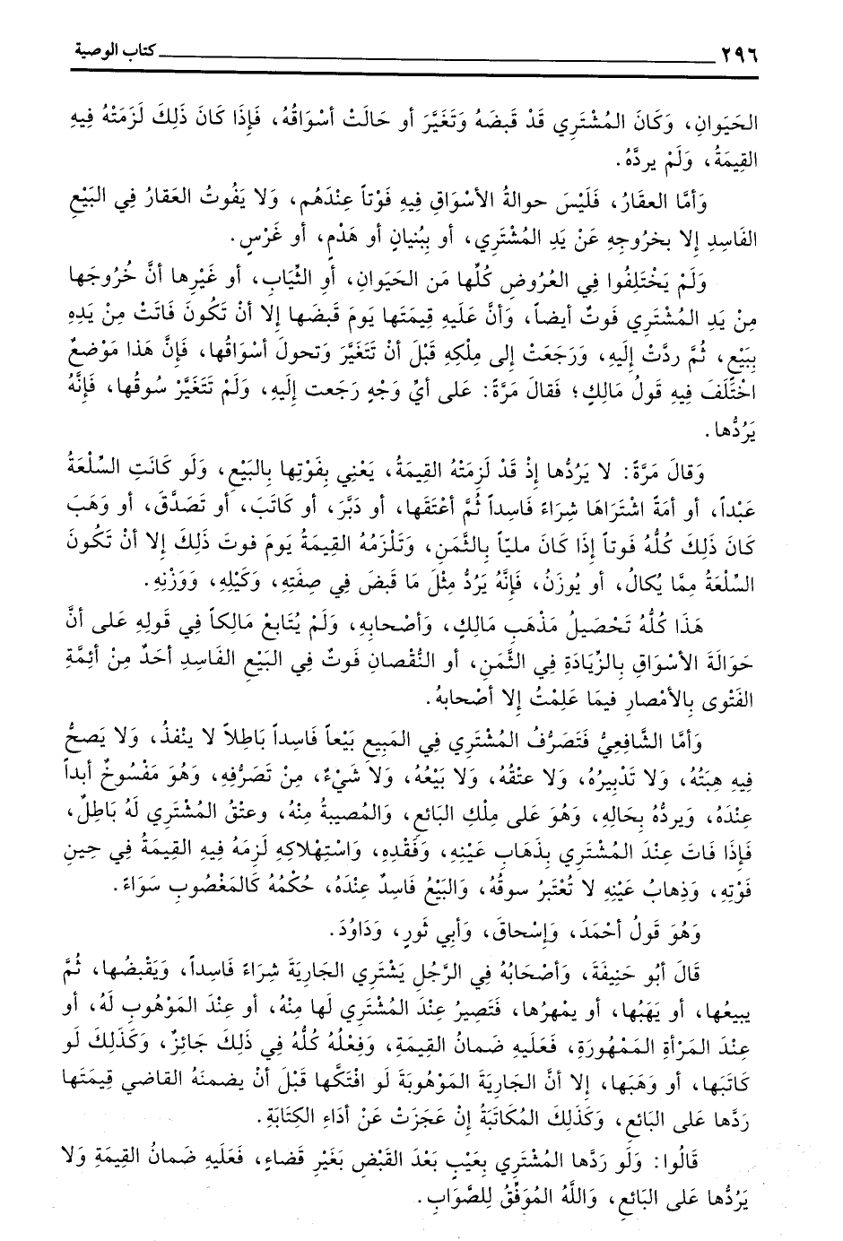 هَذَا كُلُّهُ تَحْصِيلُ مَذْهَبِ مَالِكٍ وَأَصْحَابِهِ وَلَمْ يُتَابِعْ مَالِكًا فِي قَوْلِهِ عَلَى أَنَّ حِوَالَةَ الْأَسْوَاقِ بِالزِّيَادَةِ فِي الثَّمَنِ أَوِ النُّقْصَانِ فَوْتٌ فِي الْبَيْعِ الْفَاسِدِ أَحَدٌ مِنْ أَئِمَّةِ الْفَتْوَى بِالْأَمْصَارِ فِيمَا عَلِمْتُ إِلَّا أَصْحَابُهُ