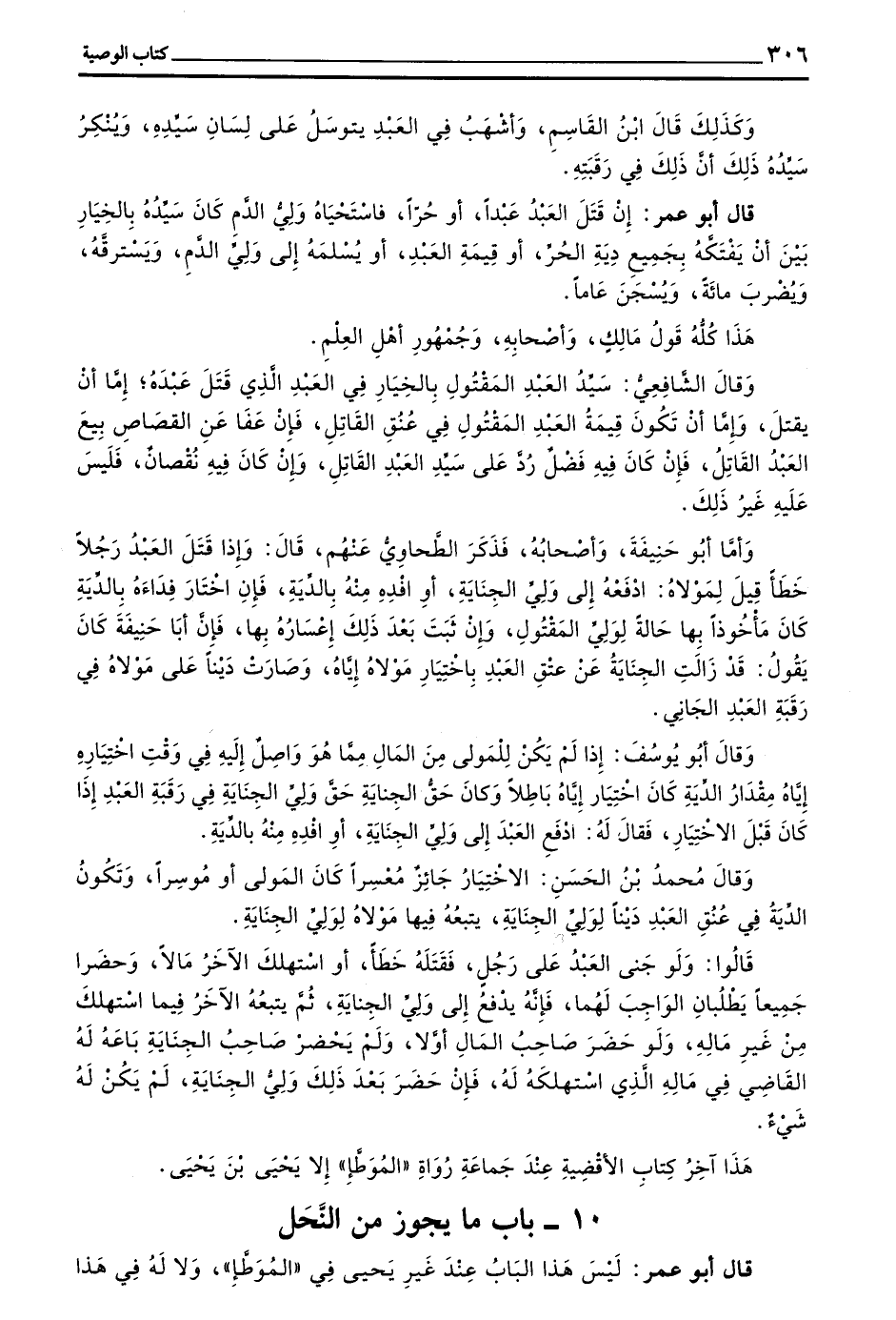 هَذَا آخَرُ كِتَابِ الْأَقْضِيَةِ عِنْدَ جَمَاعَةِ رُوَاةِ (الْمُوَطَّأِ) إِلَّا يَحْيَى بْنَ يَحْيَى