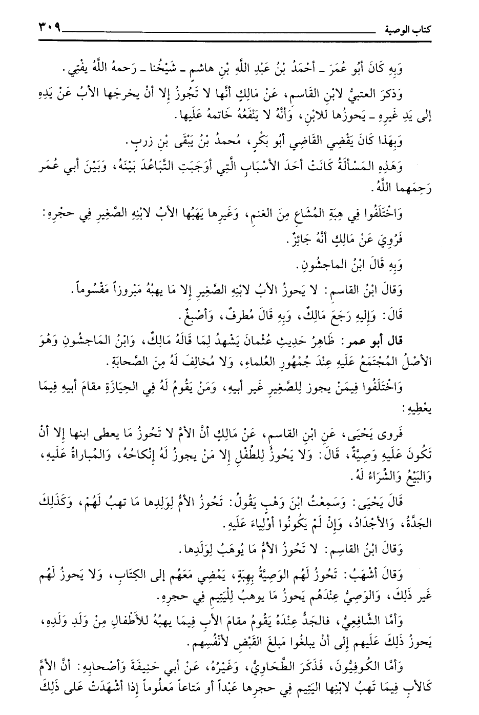 وَبِهِ كَانَ أَبُو عُمَرَ - أَحْمَدُ بْنُ عَبْدِ اللَّهِ بْنِ هَاشِمٍ - شَيْخُنَا - رَحِمَهُ اللَّهُ يُفْتِي
