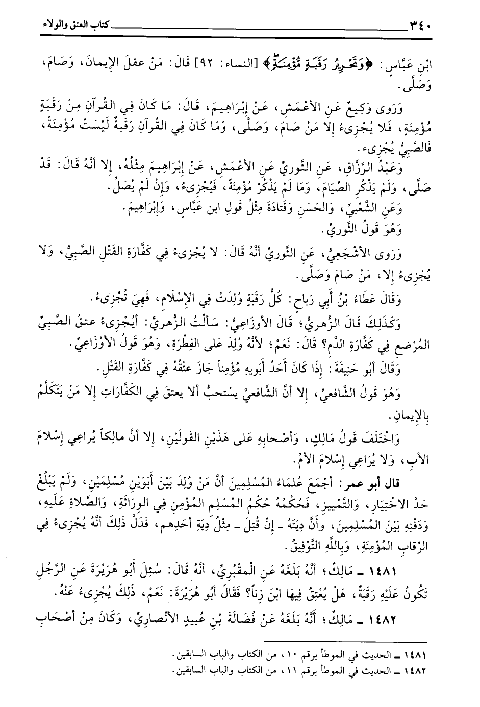 بن عَبَّاسٍ (وَتَحْرِيرُ رَقَبَةٍ مُؤْمِنَةٍ) النِّسَاءِ 92 قَالَ مَنْ عَقَلَ الْإِيمَانَ وَصَامَ وَصَلَّى