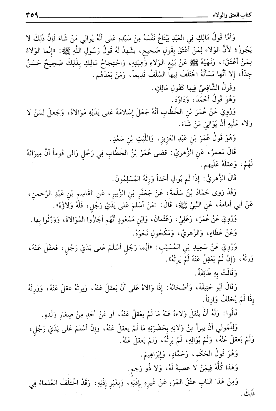 وَأَمَّا قَوْلُ مَالِكٍ فِي الْعَبْدِ يَبْتَاعُ نَفْسَهُ مِنْ سَيِّدِهِ عَلَى أَنَّهُ يُوَالِي مَنْ شَاءَ فَإِنَّ ذَلِكَ لَا يَجُوزُ لِأَنَّ الْوَلَاءَ لِمَنْ أَعْتَقَ بِقَوْلٍ صَحِيحٍ يَشْهَدُ لَهُ قَوْلُ رَسُولِ اللَّهِ صَلَّى اللَّهُ عَلَيْهِ وَسَلَّمَ (إِنَّمَا الْوَلَاءُ لِمَنْ أَعْتَقَ) وَنَهْيُهُ صَلَّى اللَّهُ عَلَيْهِ وَسَلَّمَ عَنْ بَيْعِ الْوَلَاءِ وَهِبَتِهِ وَاحْتِجَاجُ مَالِكٍ بِذَلِكَ صَحِيحٌ حَسَنٌ جِدًّا إِلَّا إِنَّهَا مَسْأَلَةٌ اخْتَلَفَ فِيهَا السَّلَفُ قَدِيمًا وَمَنْ بَعْدَهُمْ