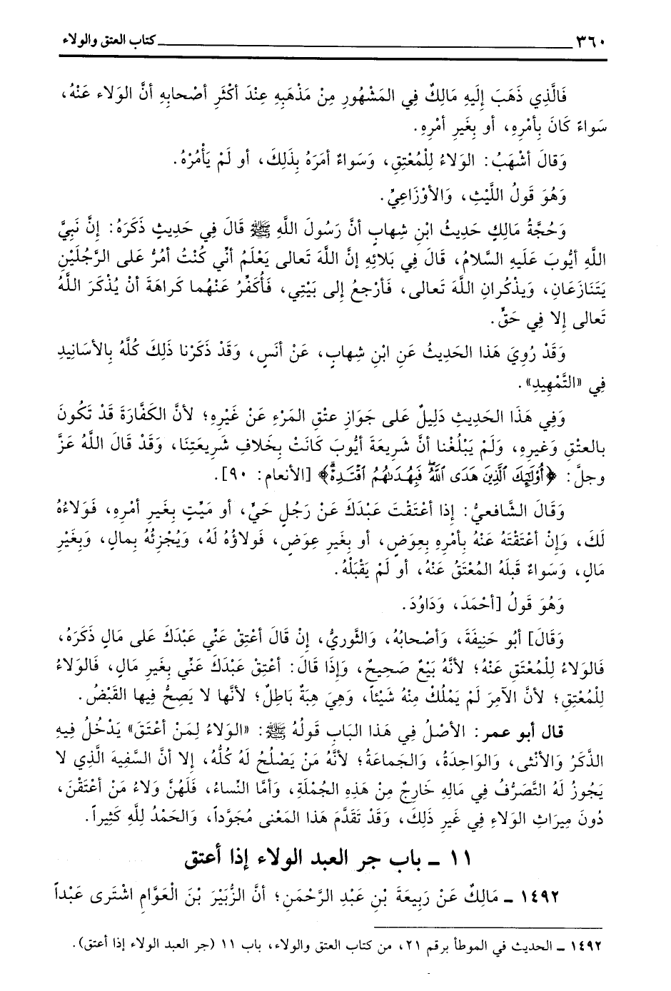 1492 - مَالِكٌ عَنْ رَبِيعَةَ بْنِ عَبْدِ الرَّحْمَنِ أَنَّ الزُّبَيْرَ بْنَ الْعَوَّامِ اشْتَرَى عَبْدًا