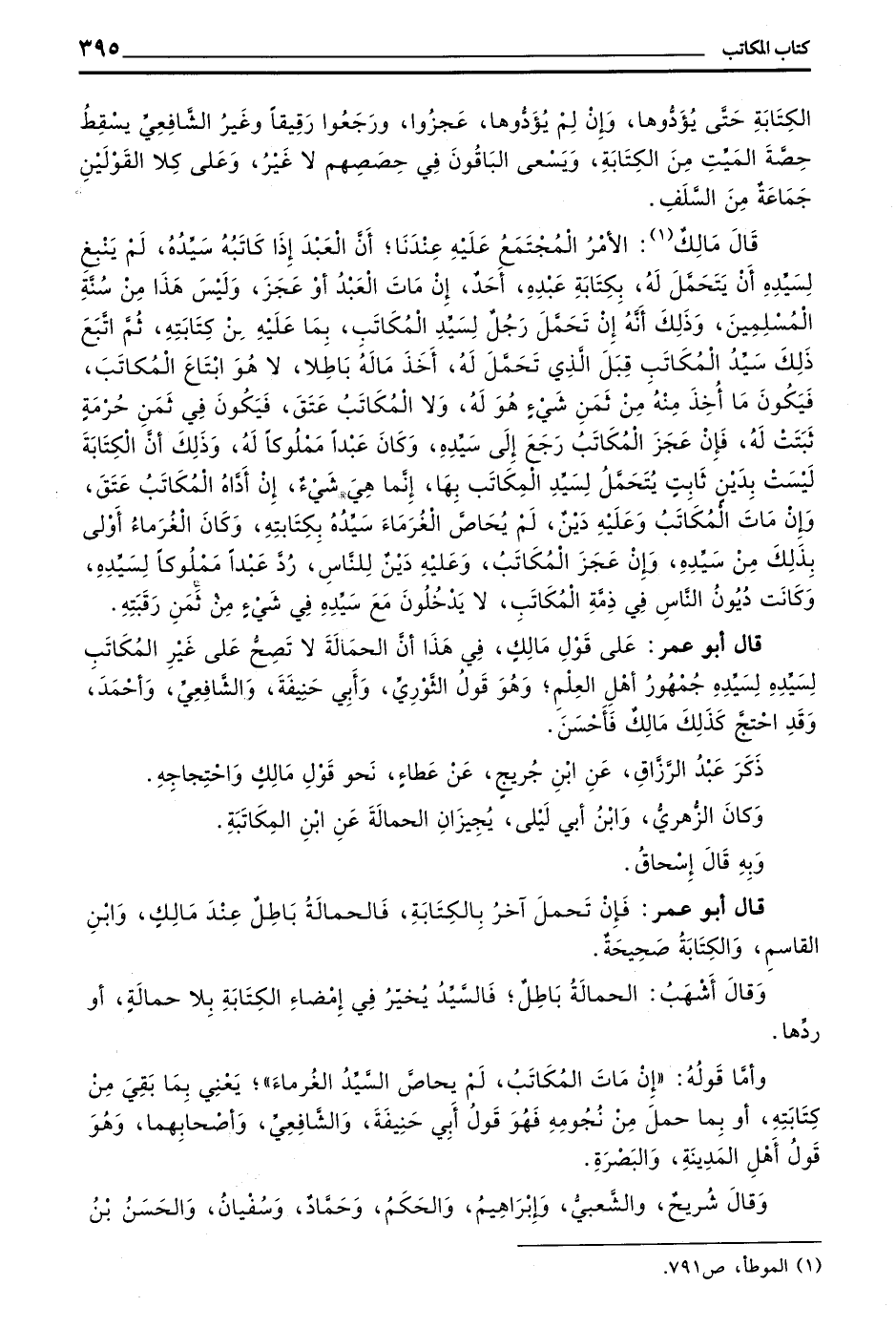 قَالَ أَبُو عُمَرَ عَلَى قَوْلِ مَالِكٍ فِي هَذَا أَنَّ الْحَمَالَةَ لَا تَصِحُّ عَلَى غَيْرِ الْمُكَاتَبِ لِسَيِّدِهِ جُمْهُورُ أَهْلِ الْعِلْمِ وَهُوَ قَوْلُ الثَّوْرِيِّ وَأَبِي حَنِيفَةَ وَالشَّافِعِيِّ وَأَحْمَدَ وَقَدِ احْتَجَّ كَذَلِكَ مَالِكٌ فَأَحْسَنَ