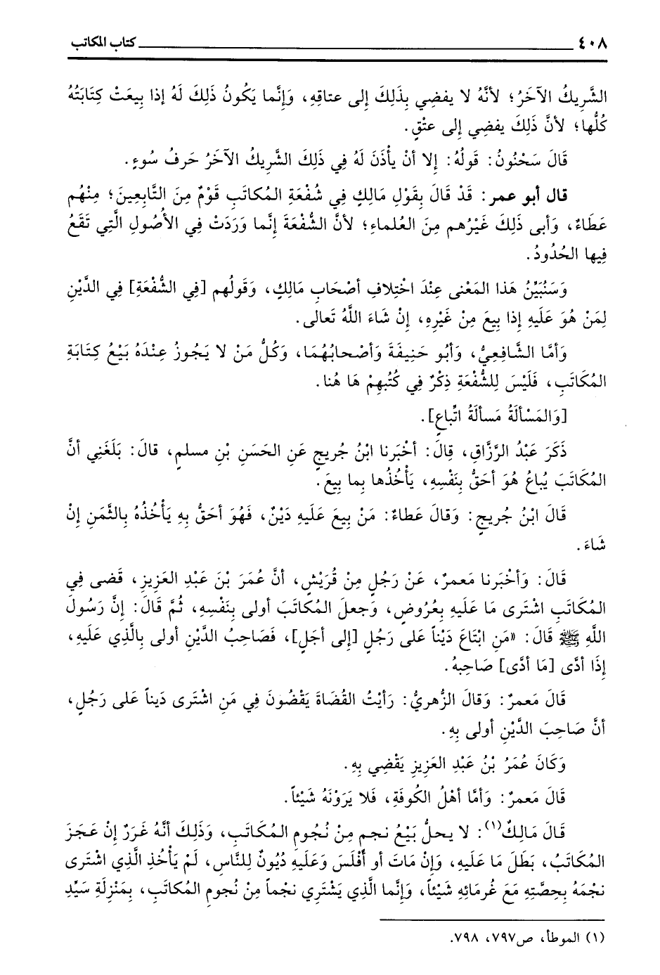 قَالَ أَبُو عُمَرَ قَدْ قَالَ بِقَوْلِ مَالِكٍ فِي شُفْعَةِ الْمُكَاتَبِ قَوْمٌ مِنَ التَّابِعِينَ مِنْهُمْ عَطَاءٌ وَأَبَى ذَلِكَ غَيْرُهُمْ مِنَ الْعُلَمَاءِ لِأَنَّ الشُّفْعَةَ إِنَّمَا وَرَدَتْ فِي الْأُصُولِ الَّتِي تَقَعُ فِيهَا الْحُدُودُ