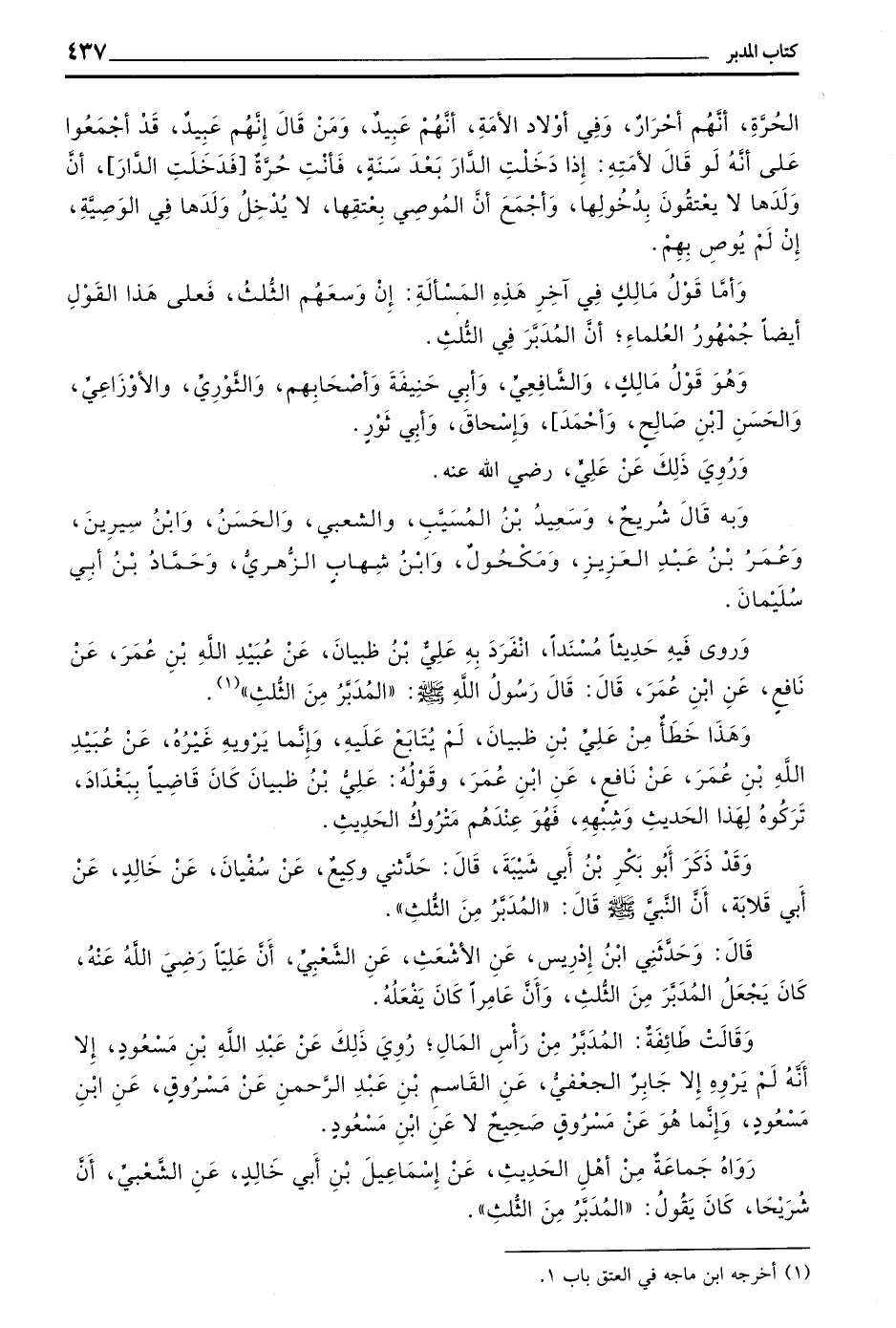 رَوَاهُ جَمَاعَةٌ مِنْ أَهْلِ الْحَدِيثِ عَنْ إِسْمَاعِيلَ بْنِ أَبِي خَالِدٍ عَنِ الشَّعْبِيِّ أن شُرَيْحًا كَانَ يَقُولُ (الْمُدَبَّرُ مِنَ الثُّلُثِ